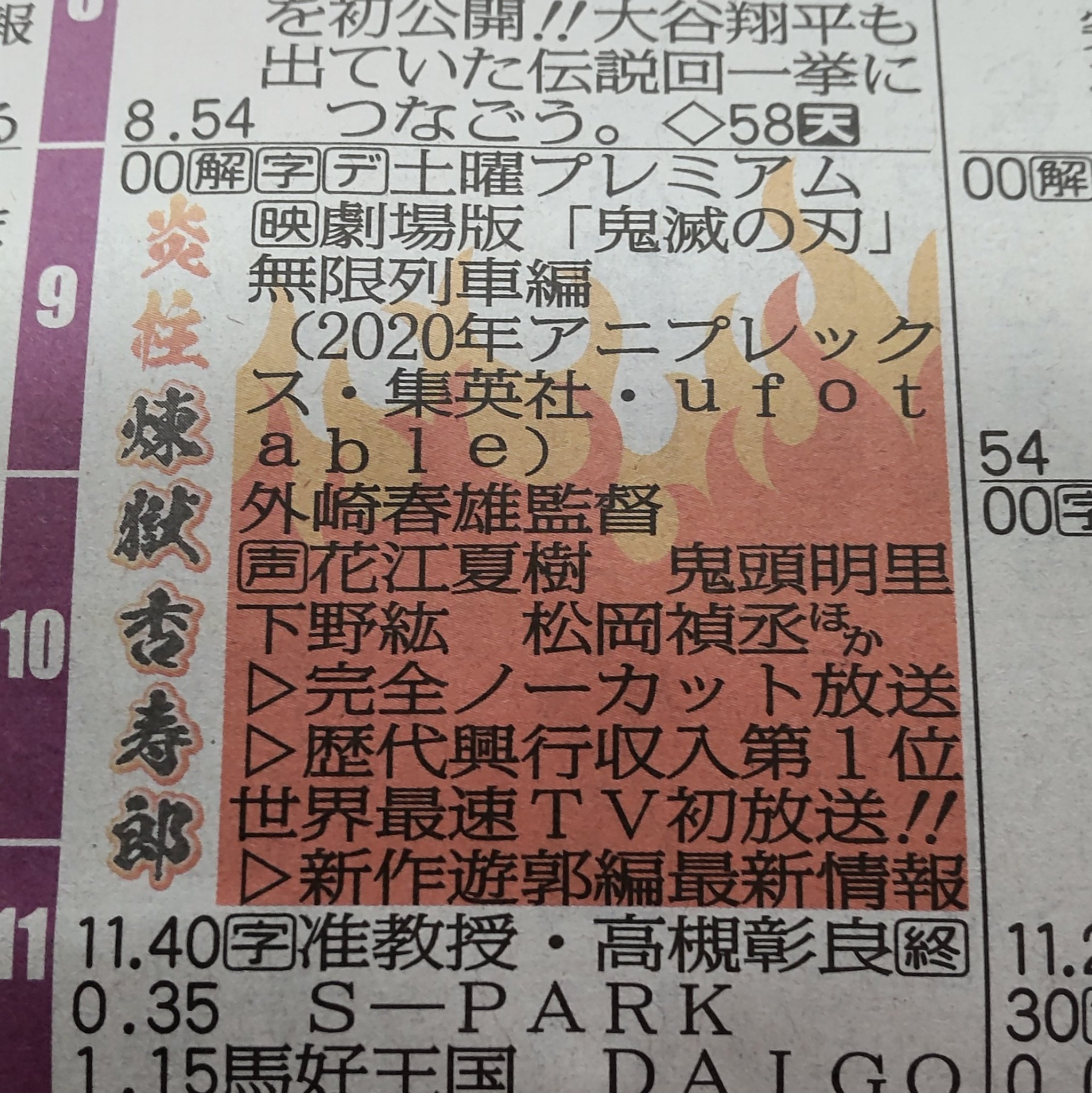 無限列車編のテレビ欄が煉獄さん仕様になっていた https://t.co/op7nzCJBHl