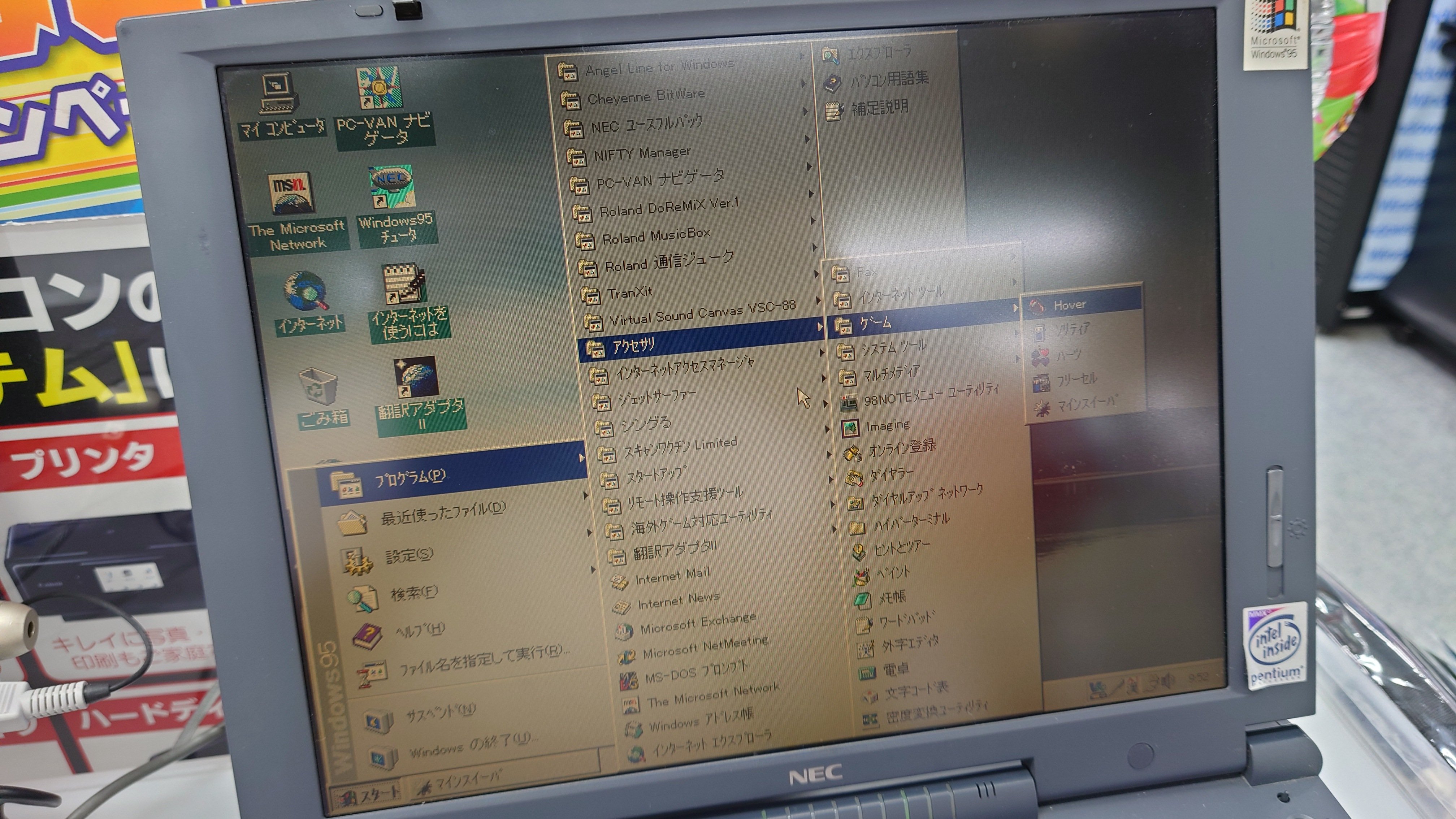 老人会の皆様お待たせしましたNEC PC-9821 LS150 Aile💻ヨドバシカメラ名古屋松坂屋店の4FノートPC売り場で展示中ですなんか今日見たら張り紙増えてたしマインスイーパが動いてましたわ✷🙂 https://t.co/AWifIvASbC