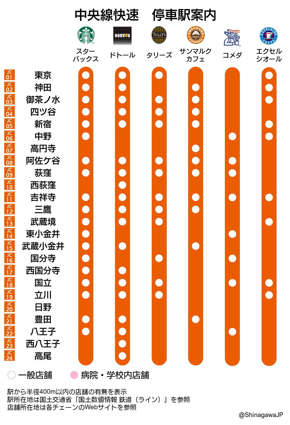 ありそうで無かったので自分で作ってみた。中央線強いな・・・🧐#カフェ路線図 #間違ってたらコメントください https://t.co/rl7Tppiy94