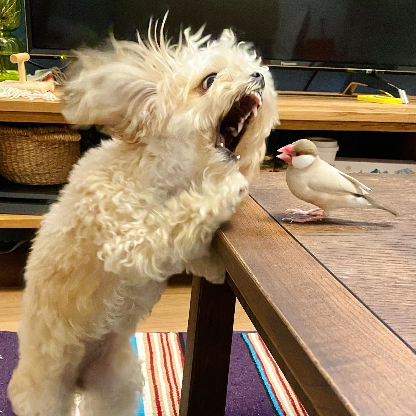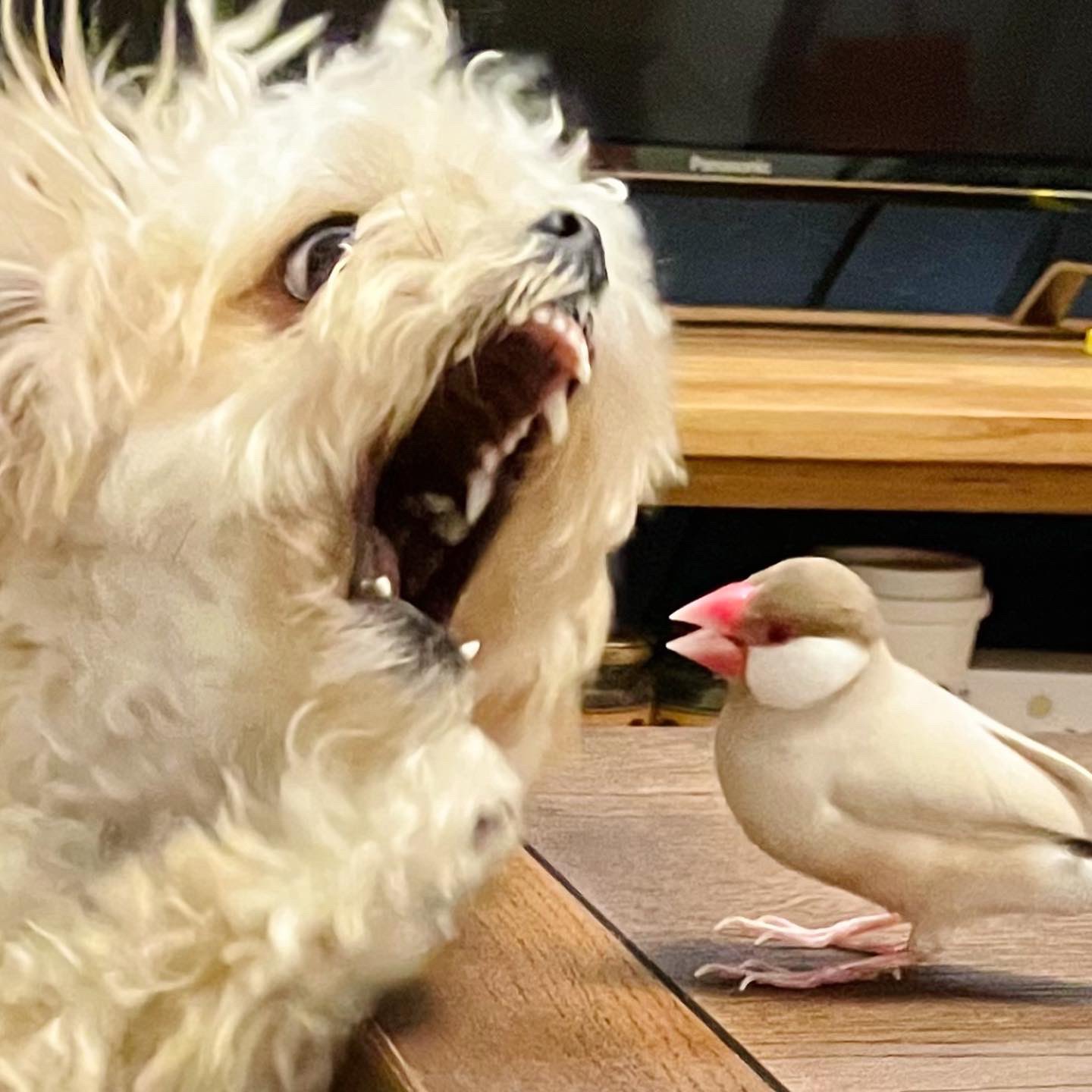 ボクんちの犬と鳥がメンチ切り合ってた🔥 https://t.co/7L23VXfA2U