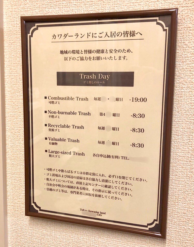 入居時に配られたゴミの日の紙、冷蔵庫に貼ってるとものすごい「「「生活感」」」を感じるのでディズニーにありそうな感じにしてみました😌#カワダーランド https://t.co/4457aBlxlk
