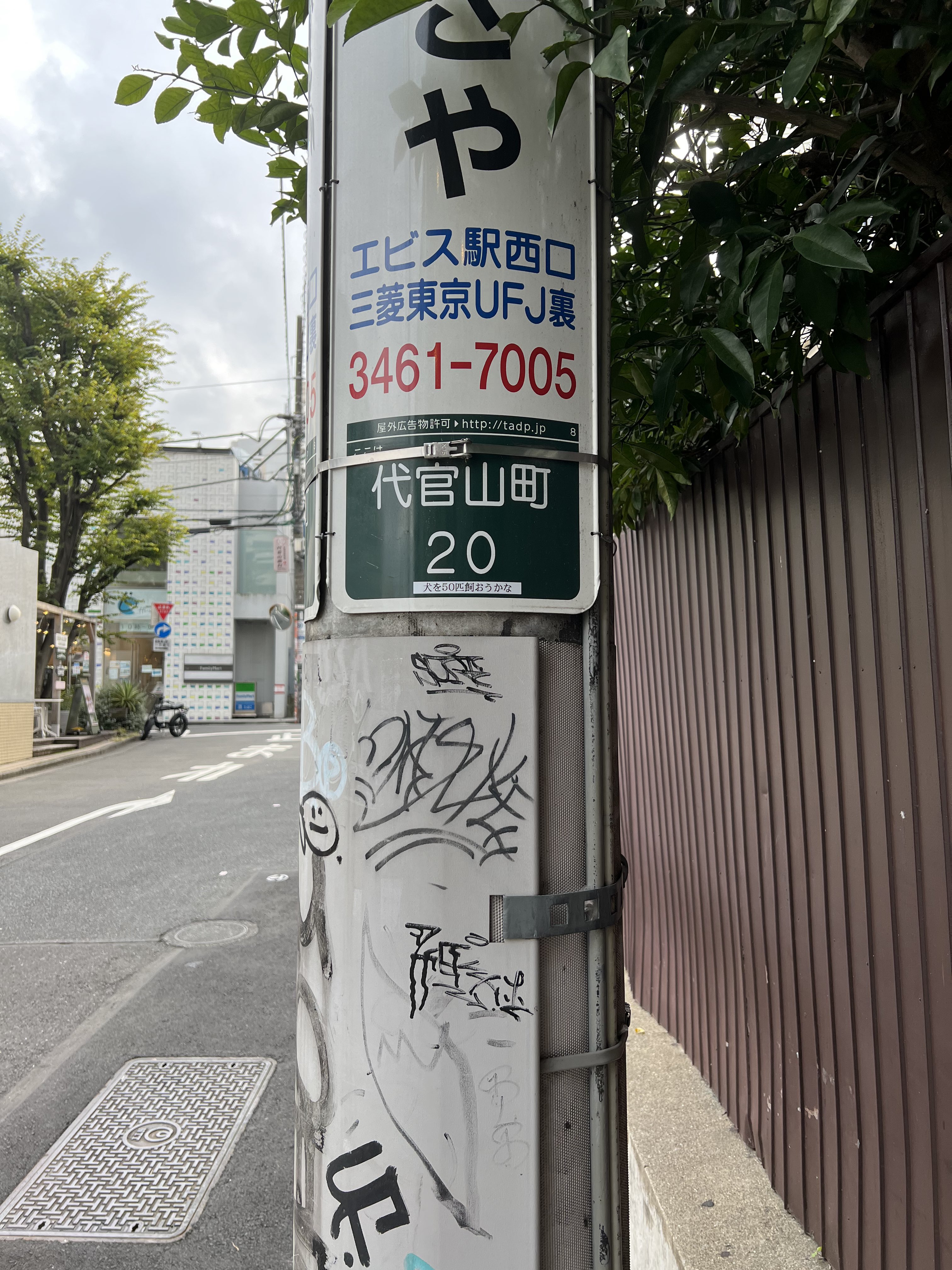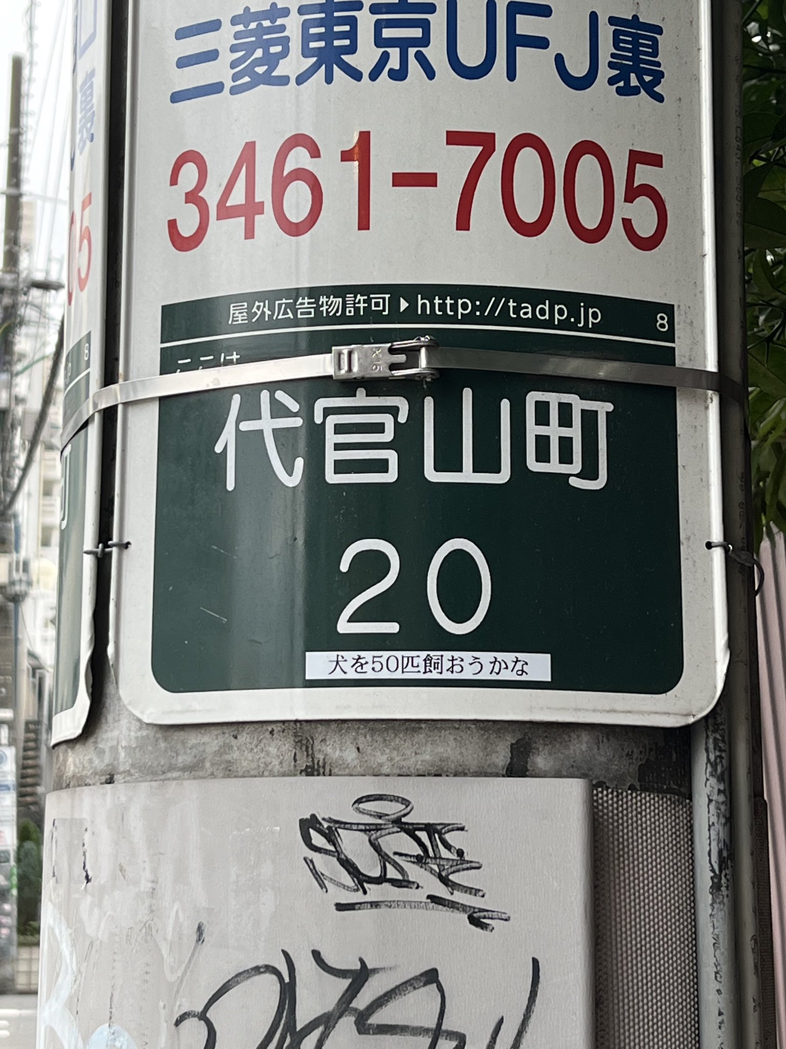代官山の秘密駅前の電柱に「犬を50匹飼おうかな」のテプラが貼ってある https://t.co/GyNdXcgGMR