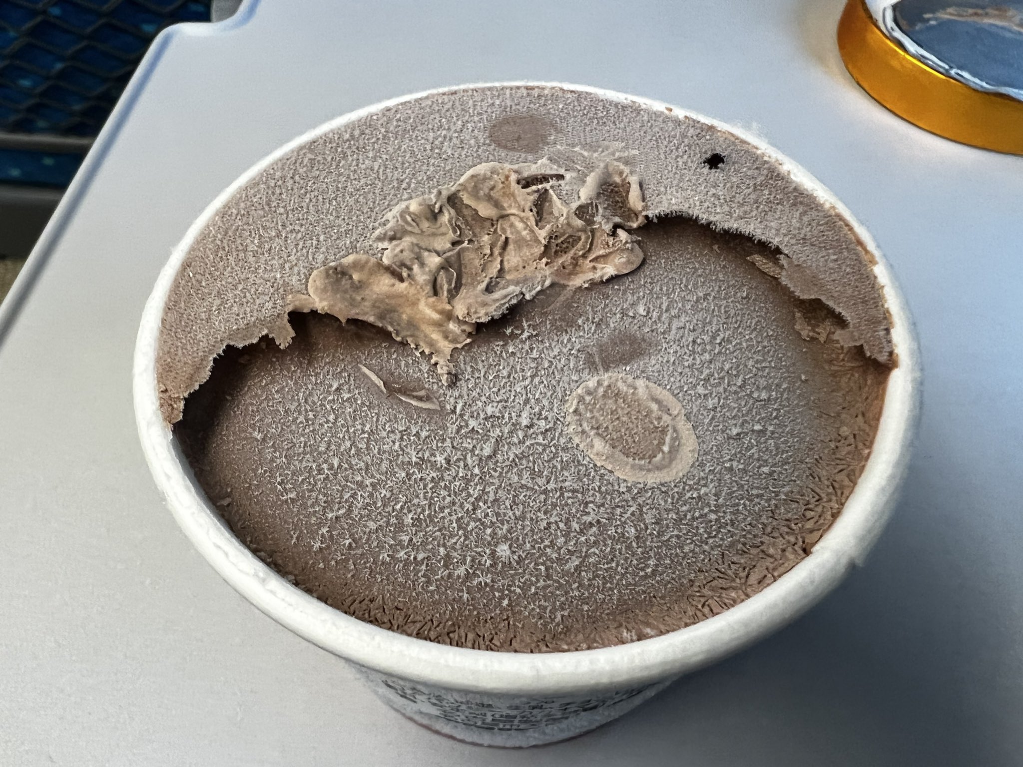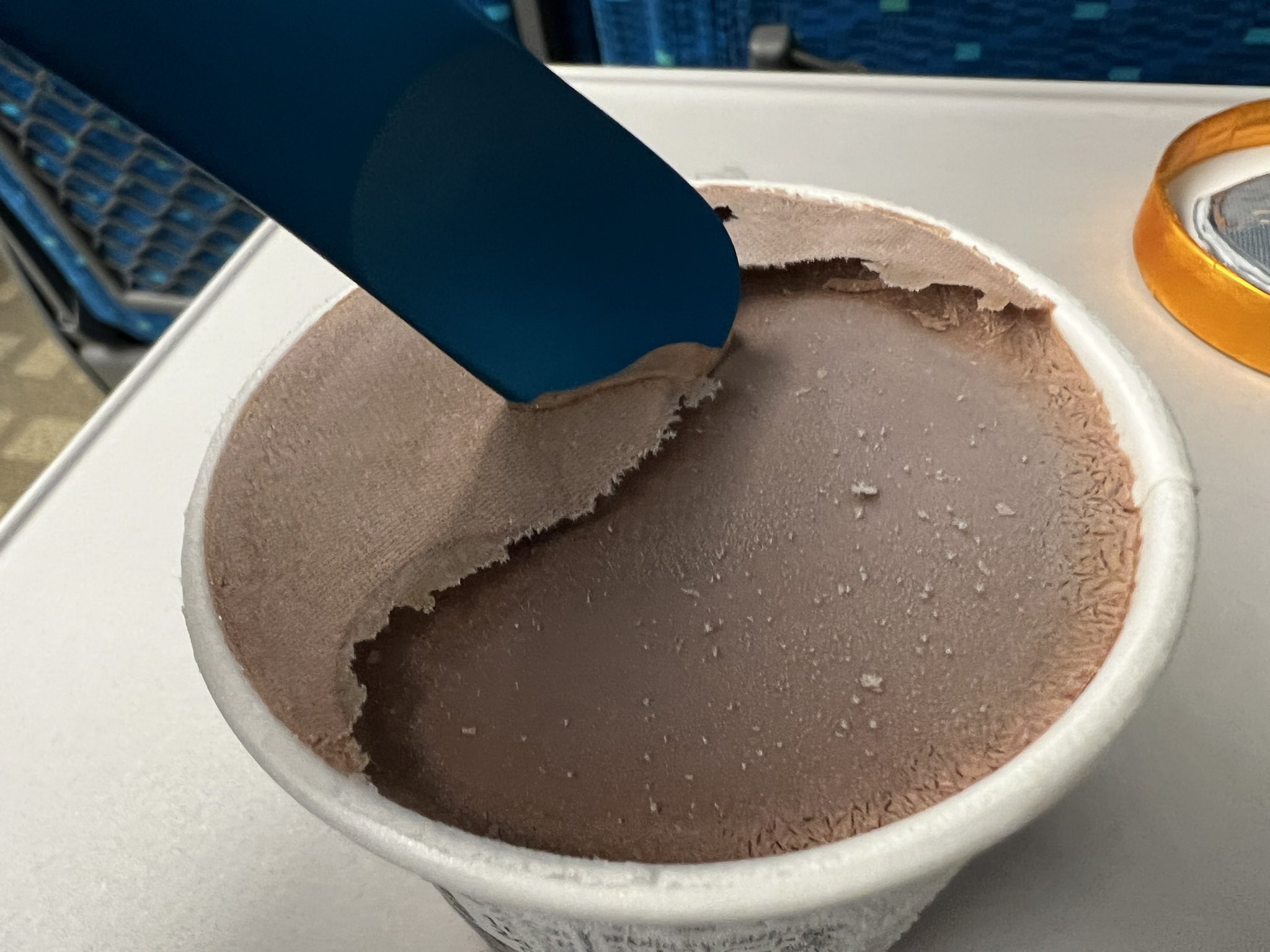 @niche510 そのスプーン買うか悩みましたね…プラのスプーンは気を付けて持たないとほんますぐ逝っちゃう…あと車内販売復活して二日後に乗った時に食べたアイスが休止前より何故か硬さ増しててしばらくプラのスプーンが刺さらなかった…(写真はやっと刺さった時の写真)シンカンセンスゴクカタイアイス…強 https://t.co/0O5rNfYR25