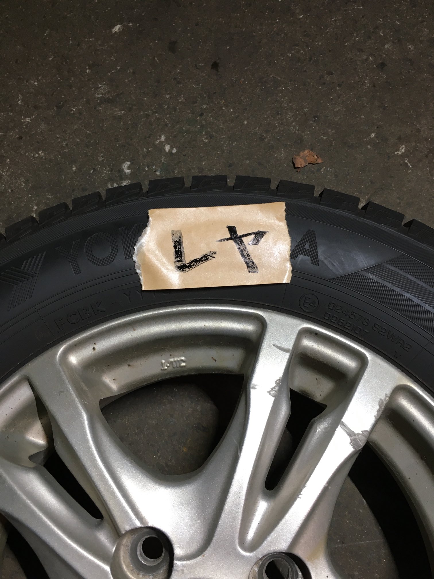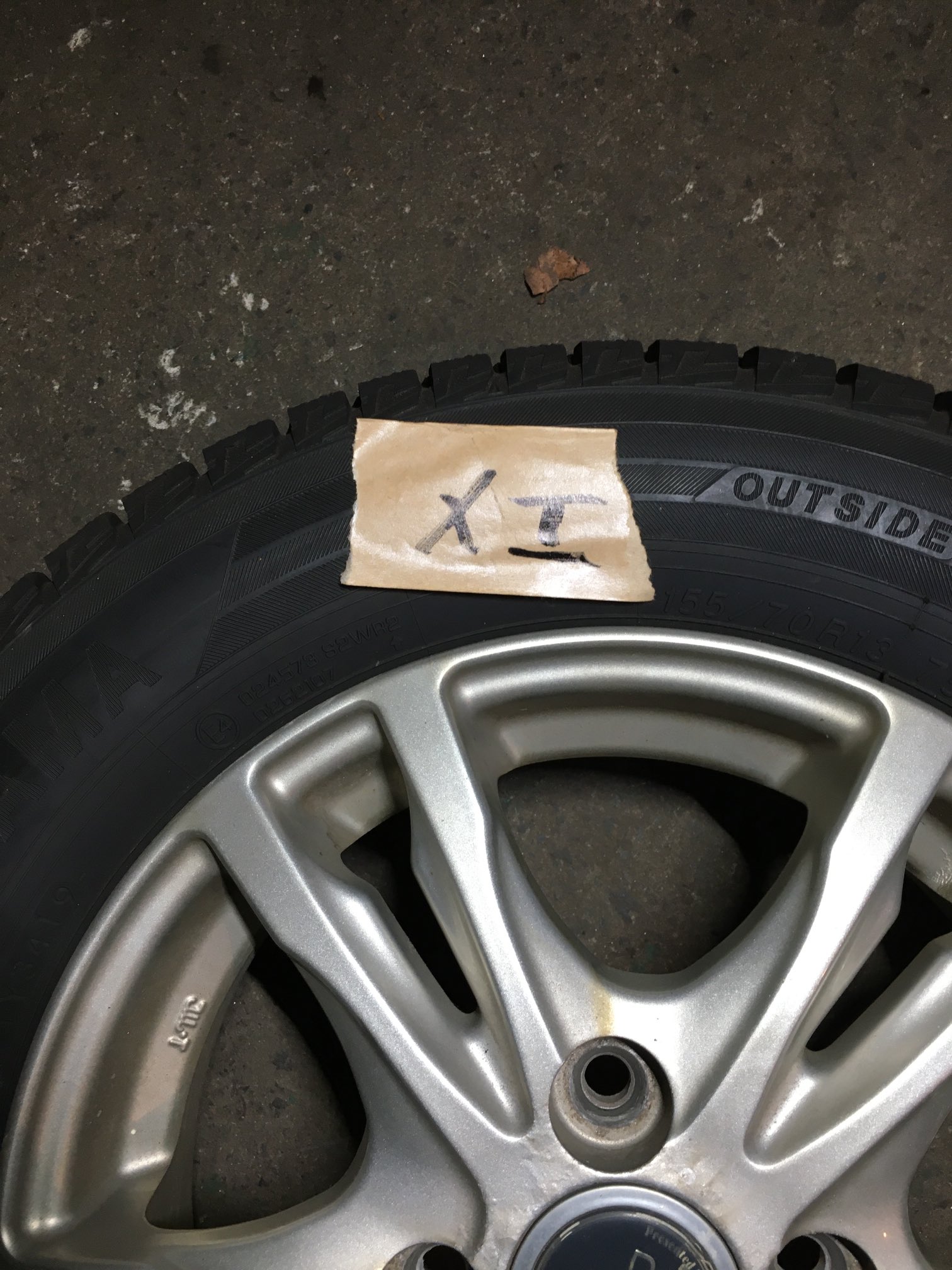津軽のタイヤ交換。几帳面なじさまからタイヤに書いてあるとおりに付けて下さいとのこと。メエ→前 レヤ→リア だよな?じさま〜😩なまったまま書くなよ〜😂 https://t.co/L3gZem8SK5