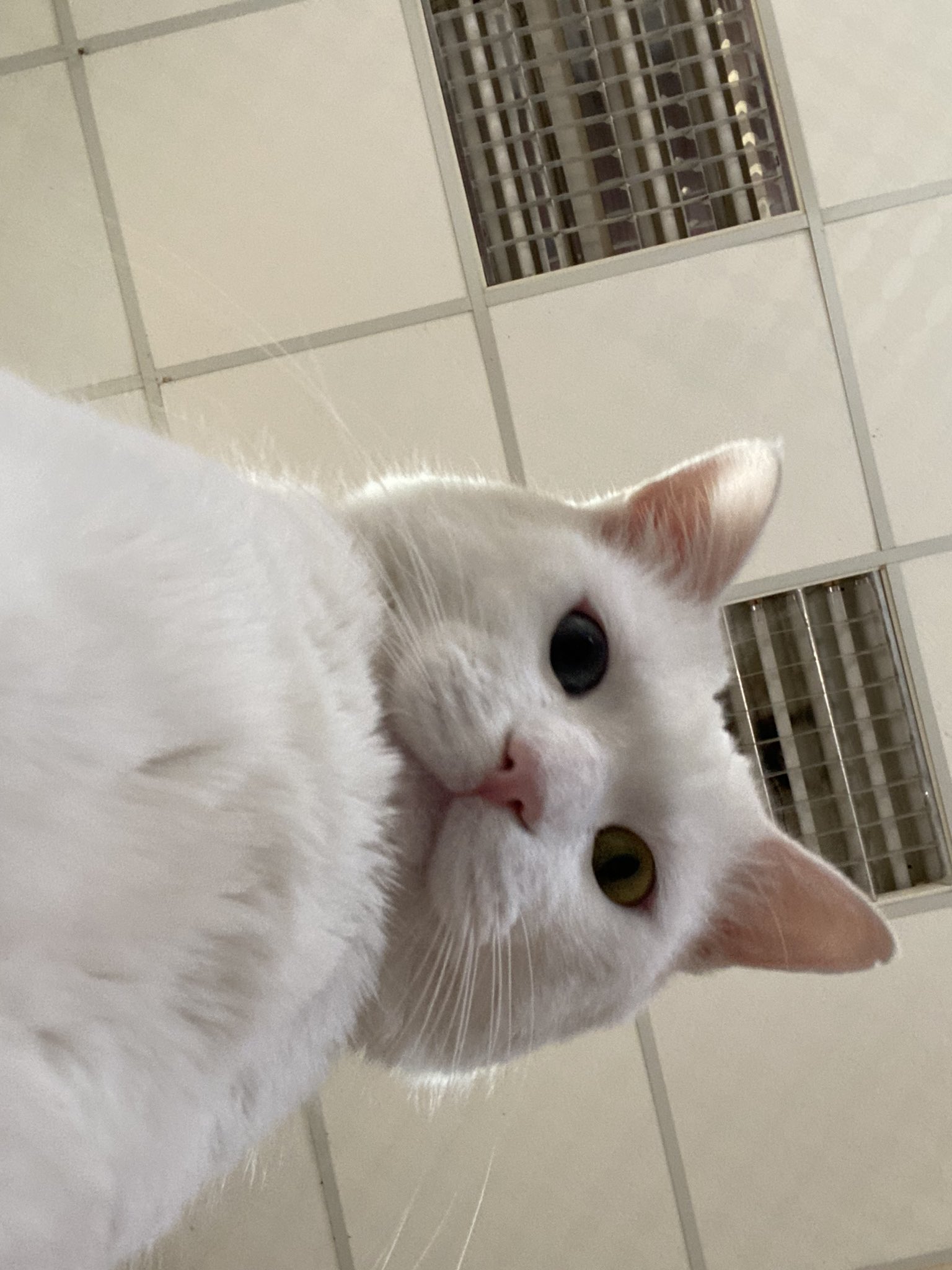 歩いていてモフモフした白い壁にぶつかったので見上げたら白い巨大猫。 https://t.co/WGMHGh0a30