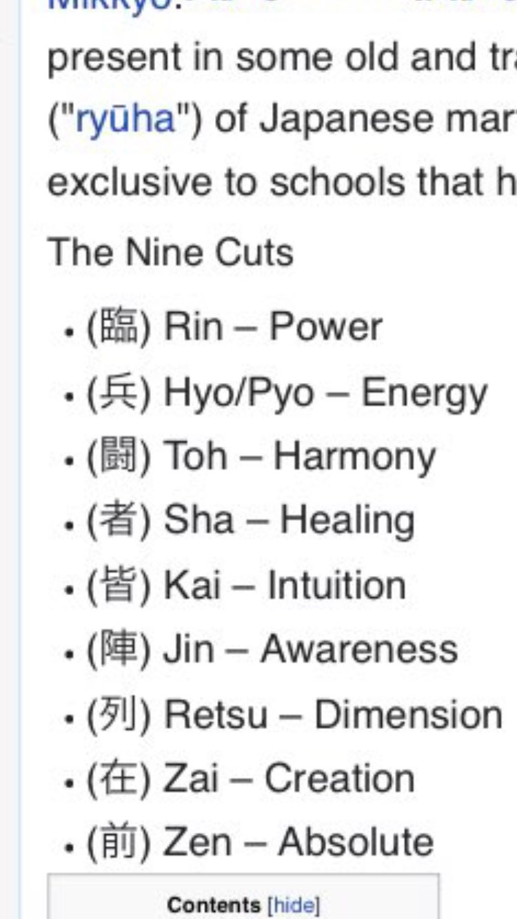 英語版Wikipediaの胡散臭すぎる(と言うかほぼ嘘な)九字解説めちゃくちゃ好き https://t.co/gFRz5v6gKu