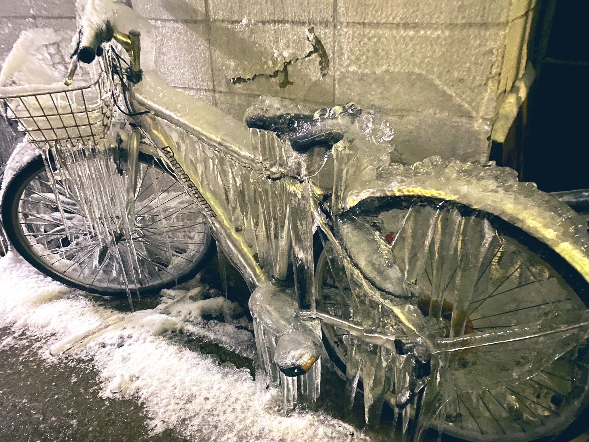 自転車が凄いことになっていた、、、新年のはじまり。 https://t.co/TumM0mDwbE