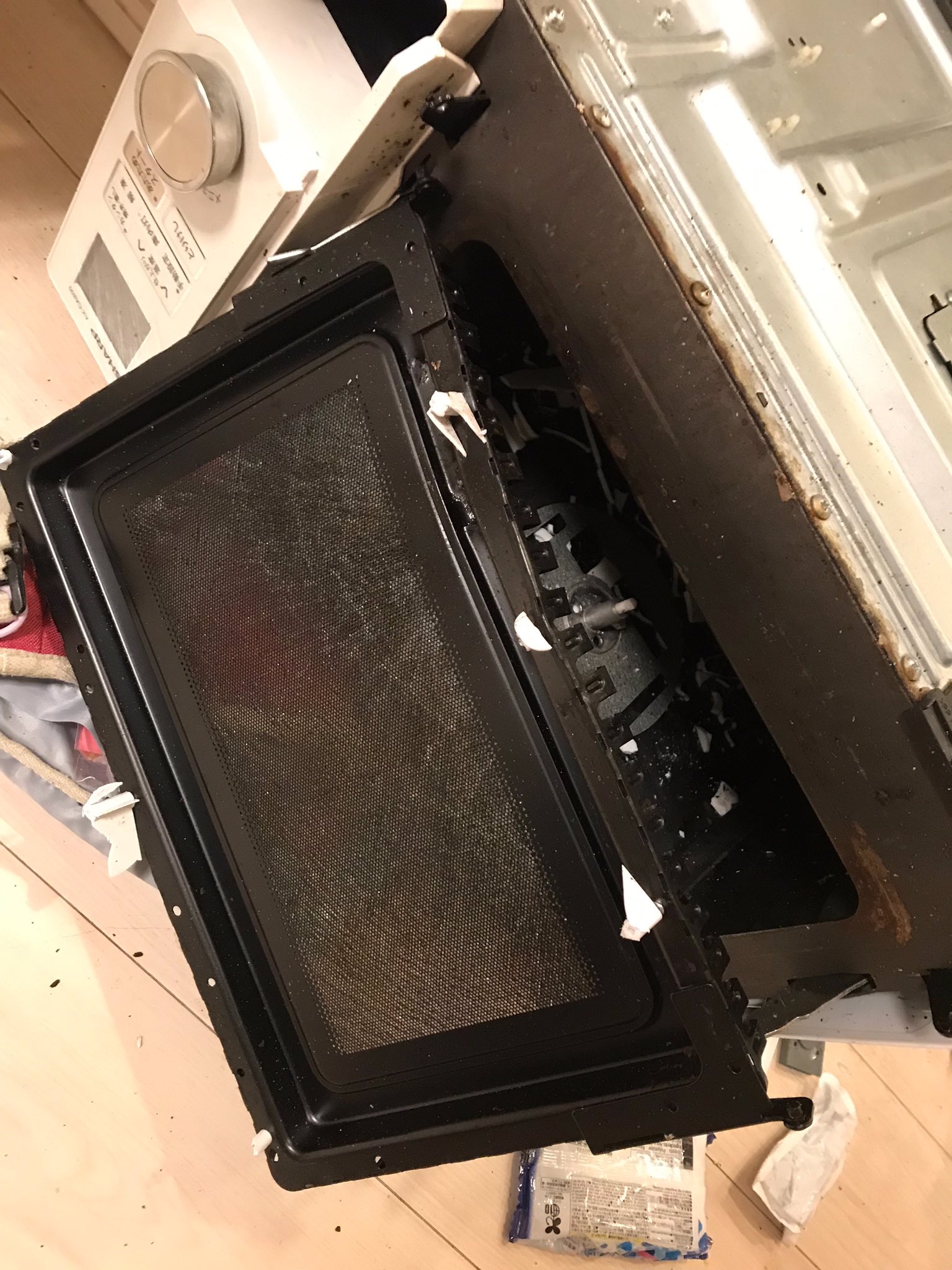 娘が誤ってペットボトルを温め、オーブンレンジが大爆発。25キロの鉄塊が、こんなに吹き飛ぶとは。。皆様もお気をつけください😫(娘は無傷でした🙇♂️) https://t.co/VZtm3VZ3x7