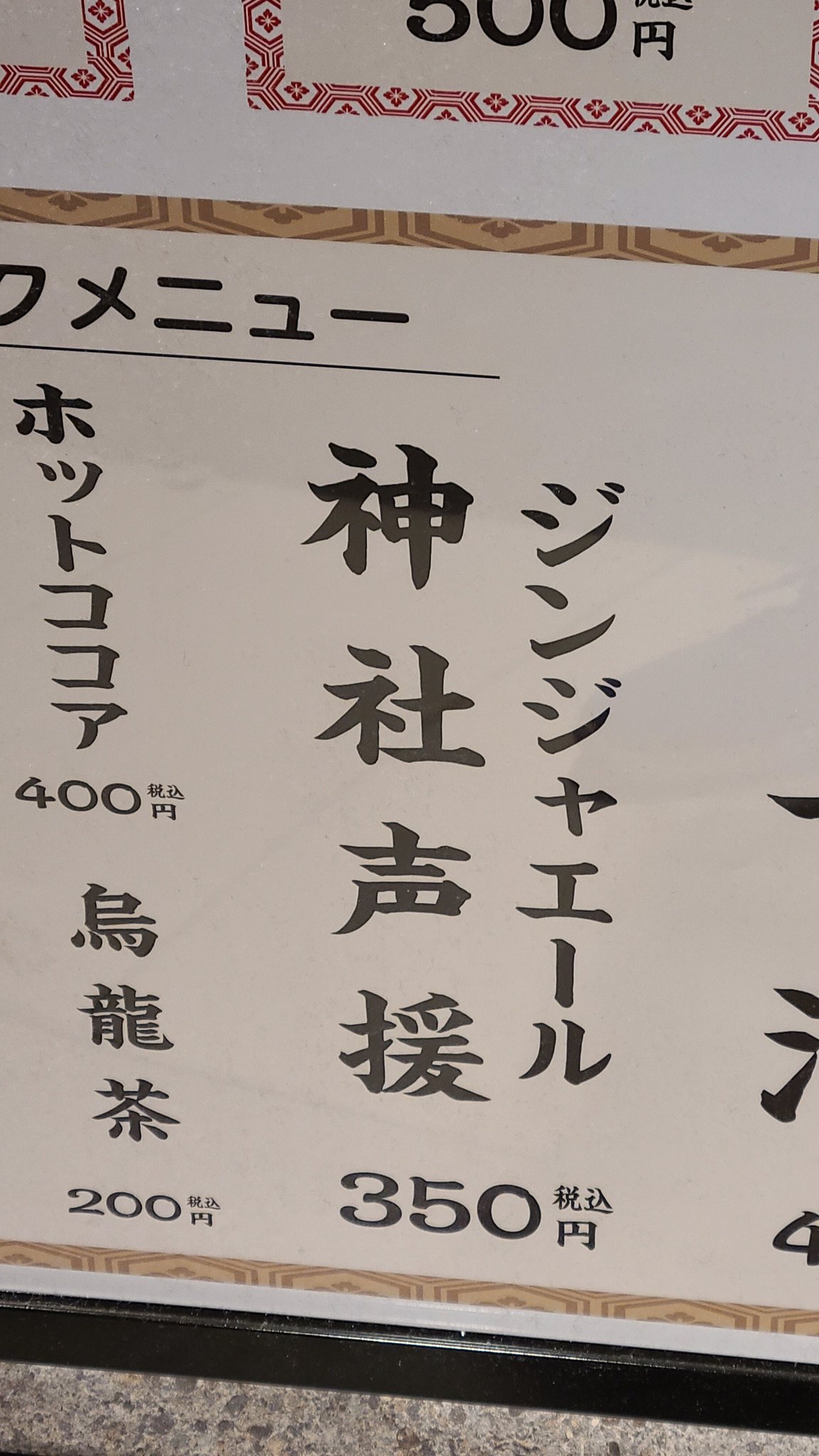 @naunau_Hols @neko_matsuri 「神社声援(ジンジャエール)」明治時代、寒い中初詣の参拝客の為に働く神主達の姿を見た西洋の医師が、彼らの為に体を温める生姜と、スタミナを付ける蜂蜜を混ぜた飲み物を作り差し入れた所、神主達より参拝客の間で人気となり全国に広まったとされる。民明書房刊『神の道に纏わる意外な物』より