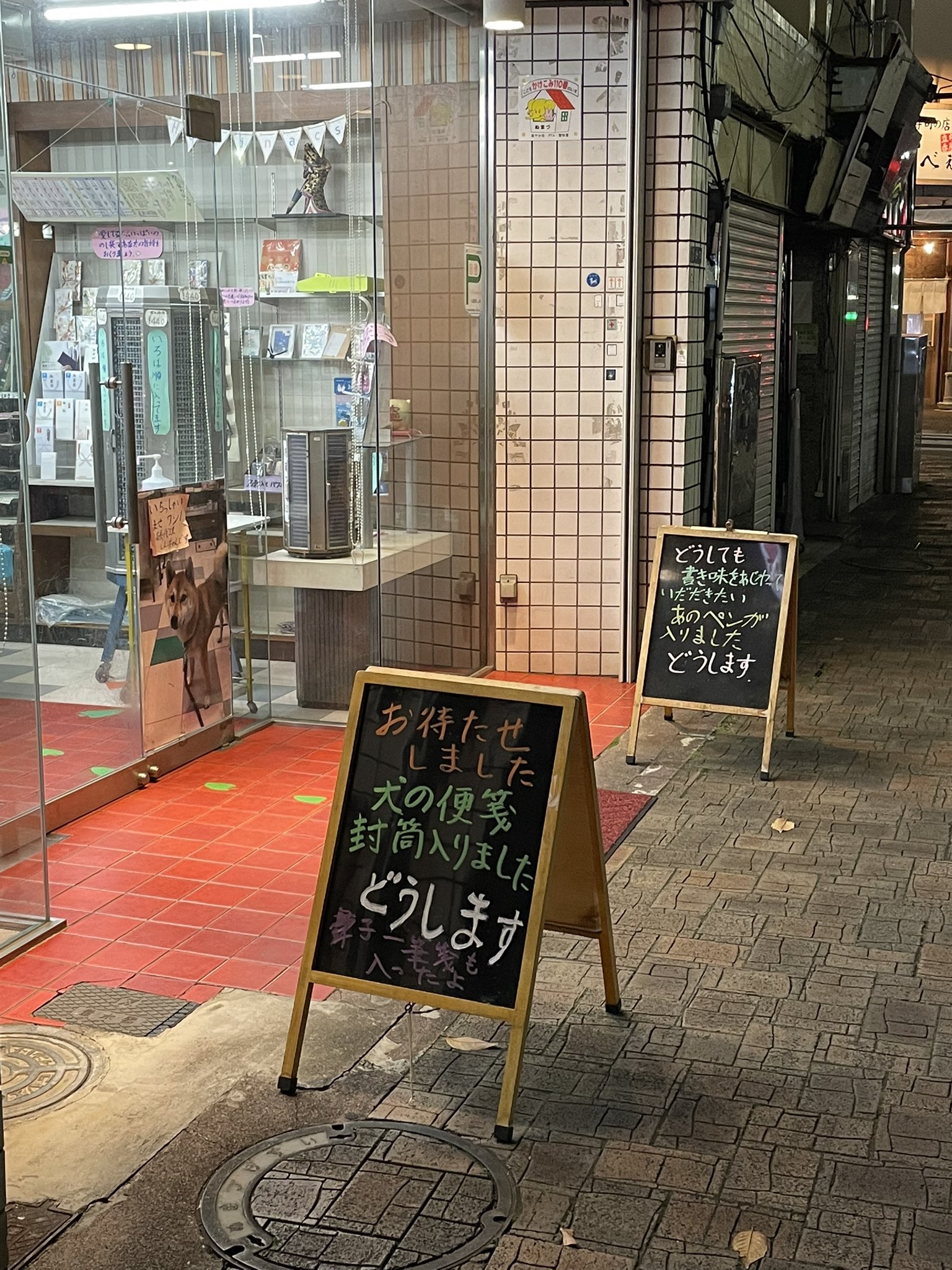 @enuenuenubi 看板にはちょっとだけイラッとするけど扉に貼ってある看板犬にご飯食べてほしくて買い物したい気にさせる巧妙なテクニック……