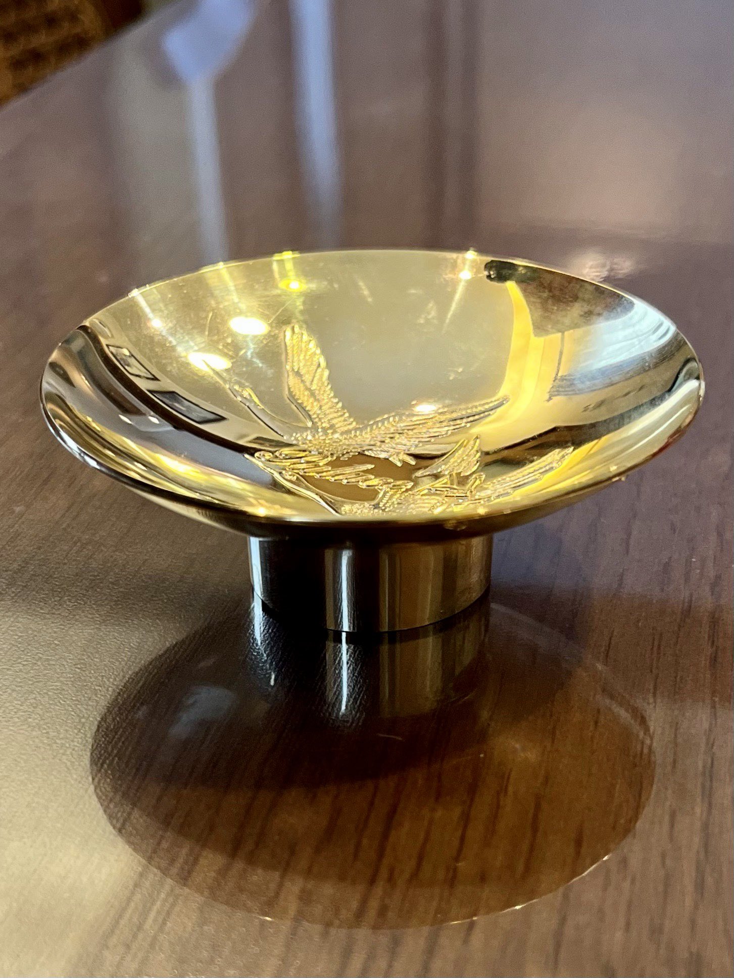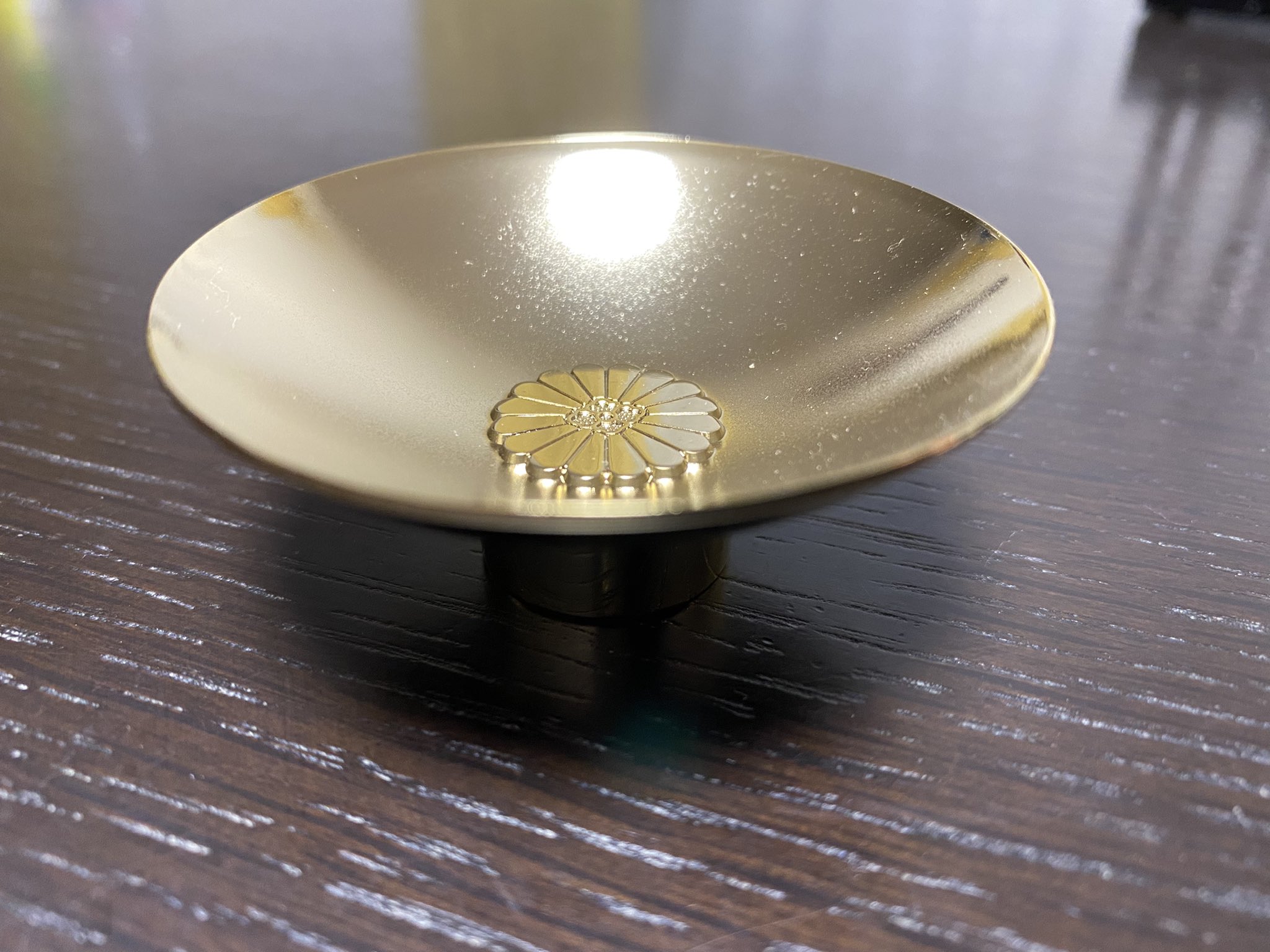 うちの3歳児、苦い味のお薬が飲めず困る事あるんですが、この金の盃に入れて「王様のおくすりだよ?」といって与えるとニコニコしながら飲み干し満足気なのでいい感じです。 https://t.co/uifU1vZhef