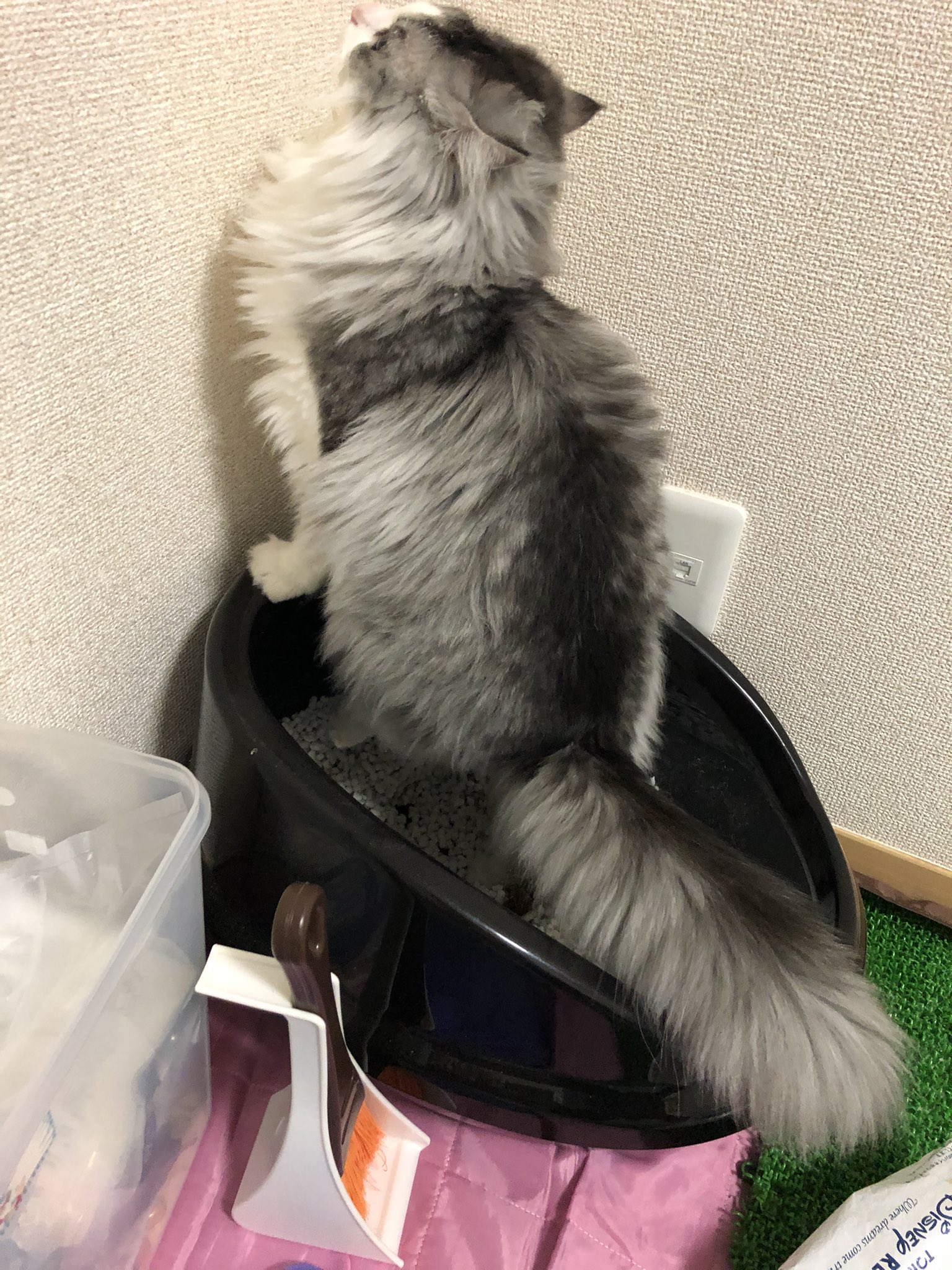 @3p5p3DzS7RJx43W 猫それぞれできるだけお尻を汚さないよう気をつけてるんでしょうね。うちのは長毛なので、尻尾をトイレの淵にかけて💩するので端の方に💩が😅