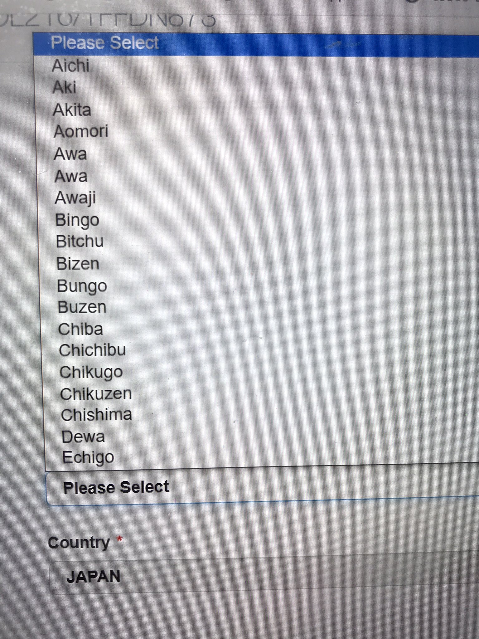 これ某国のe-VISA申請画面なんですが、都道府県を選択する画面を見て???ってなりましたwww https://t.co/P5NiE2lSGK