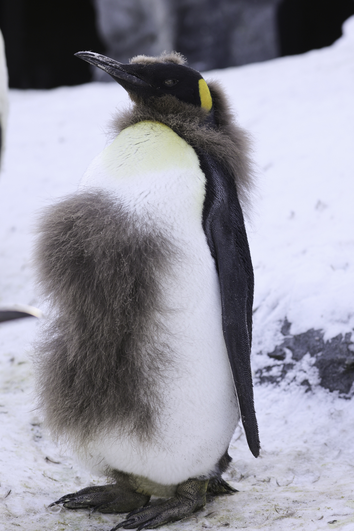 6月に孵化したキングペンギンのヒナ🐧✨換毛が進み、羽毛がマフラーや胸毛のように残っています👀笑[by KWI][Photo by sakurai]#LiveZooInAsahiyama #旭山動物園 #キングペンギン https://t.co/eDBNEvDx6E
