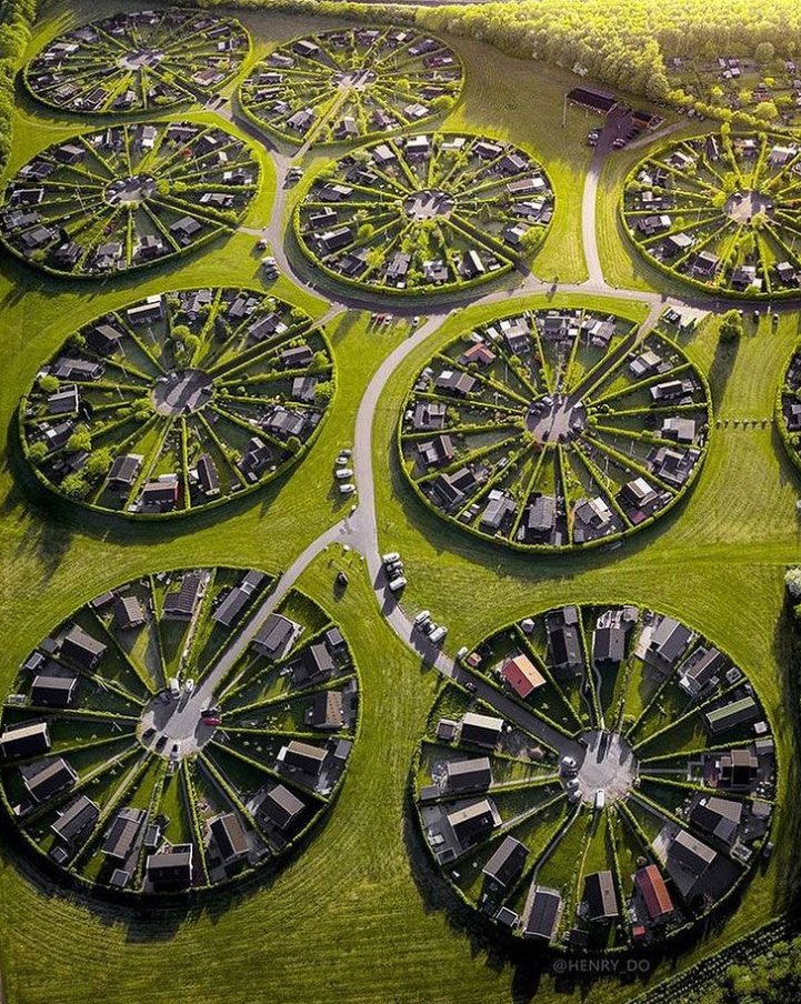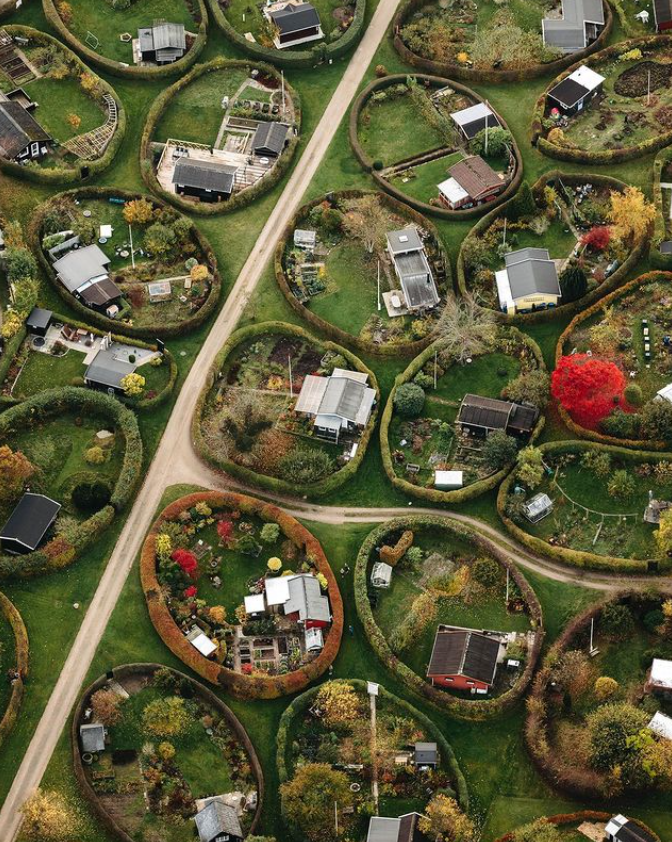 コペンハーゲンの郊外には、楕円形の茂みに囲まれた家々が並ぶ区域があり、家の所有者達は、それぞれのエリアで園芸を楽しんでいるようです。車が走っていないのも特徴。造園家カール・テオドール・ソーレンセンにより 1940 年代末から 1950 年代初めに、この区域は作られました。©Nicolas Cosedis https://t.co/UeflOoYox1