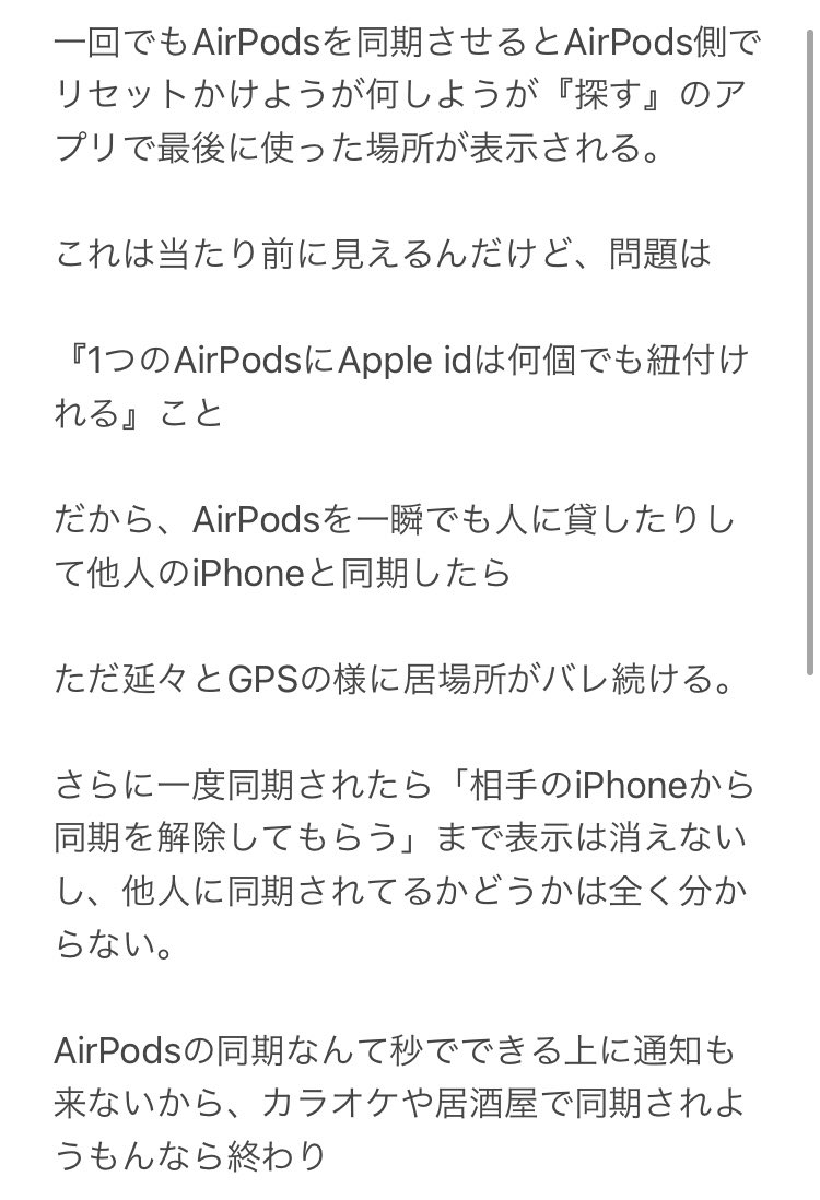 【注意】 Appleイヤフォン「AirPods」を一瞬でも人に貸すと…相手に位置情報が垂れ流しになるらしい😨