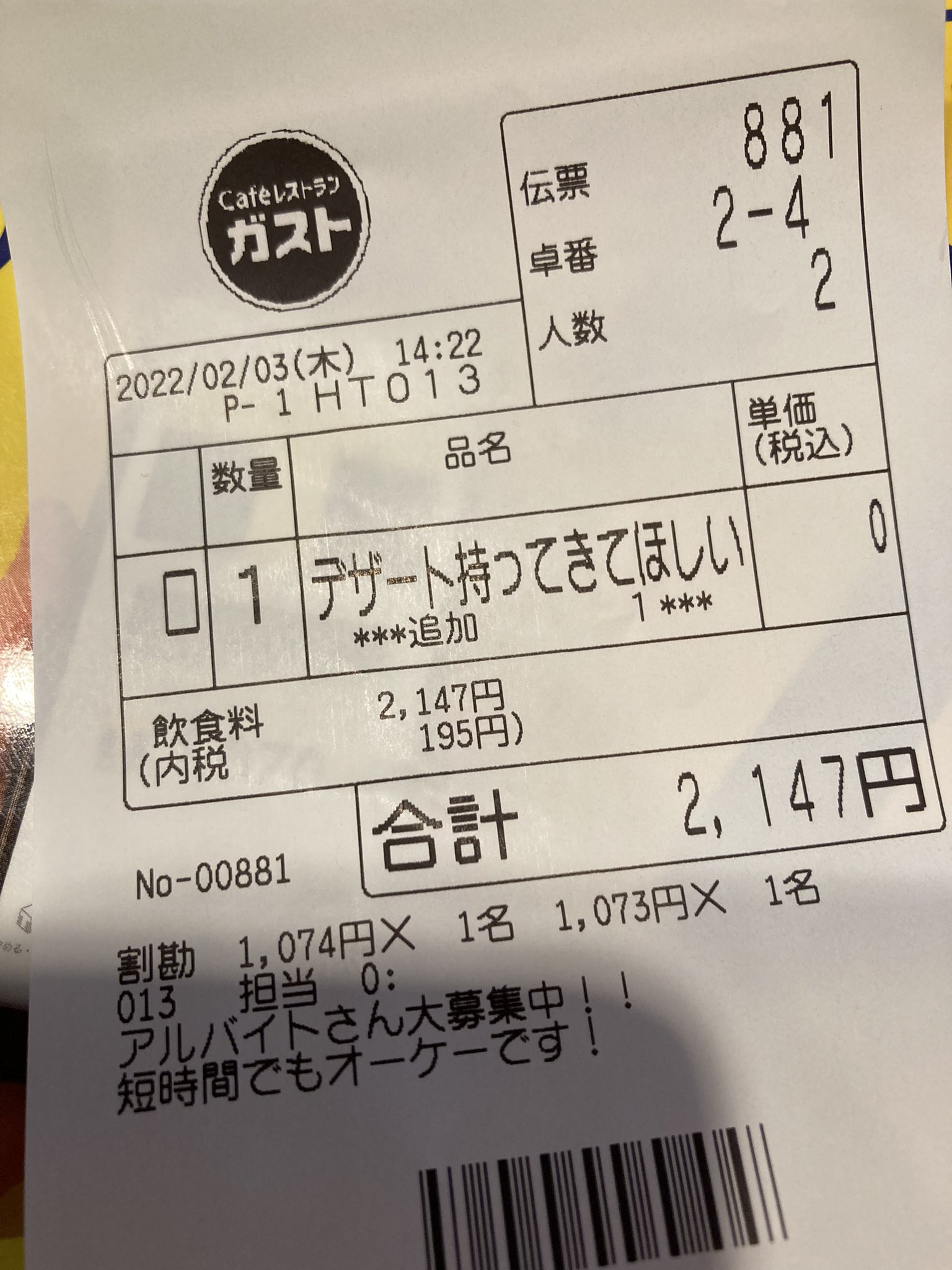 @iki_ikiLG21 最後の追加伝票の発行(差分発行)だからですね、キッチンプリンタから再発行すれば、注文したものがちゃんと印字されますが、それをサボったんだろうなと思います
