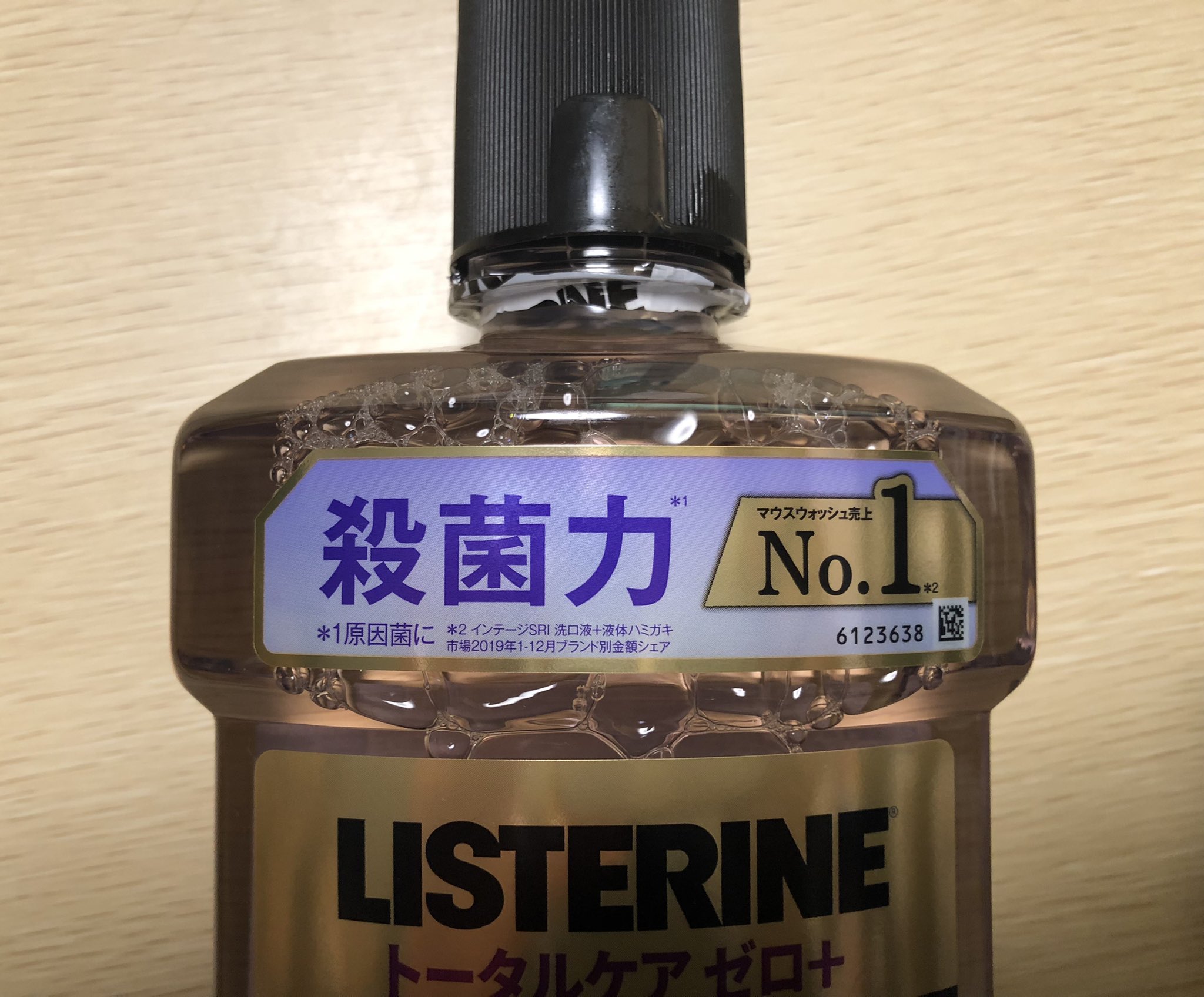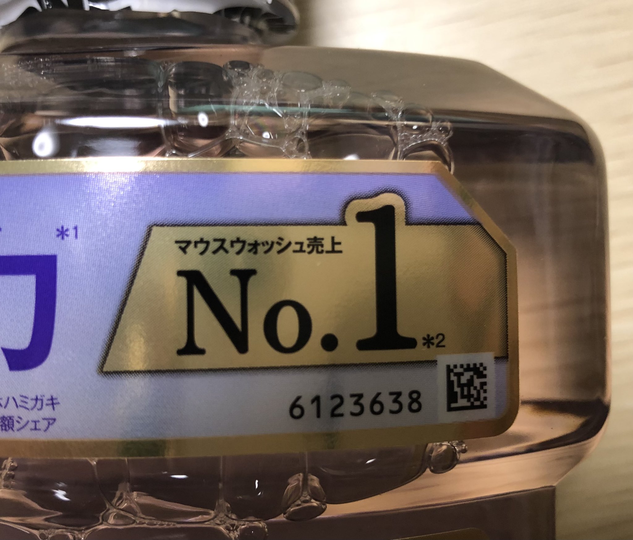 リステリンに付いてるシール、今まで特に疑問も抱かずに「殺菌力No.1」だと思ってたけど、よく見たらNo.1なのは売り上げだった。え、じゃあ殺菌力は……? https://t.co/tOIS51cVdn
