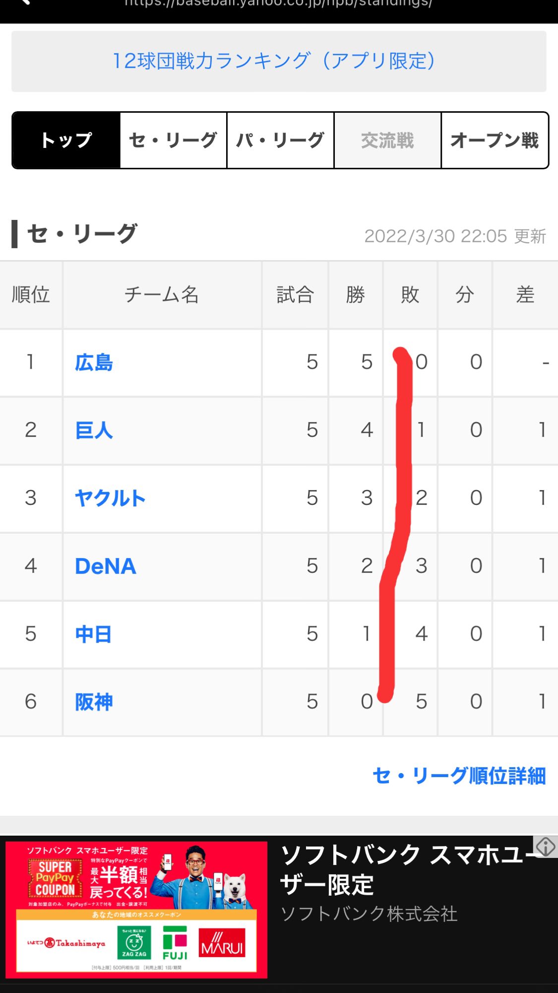 セリーグ順位表の勝利数が「5・4・3・2・1・0」できれいに整ってる✨何年ぶりの珍事なのかだれか調べてほしい💗 https://t.co/xzf4wHD1QR