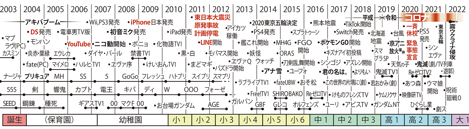 「なんて羨ましい…」この春大学一年になる人が子供時代に触れてきた“文化”を時系列に並べた図が話題に