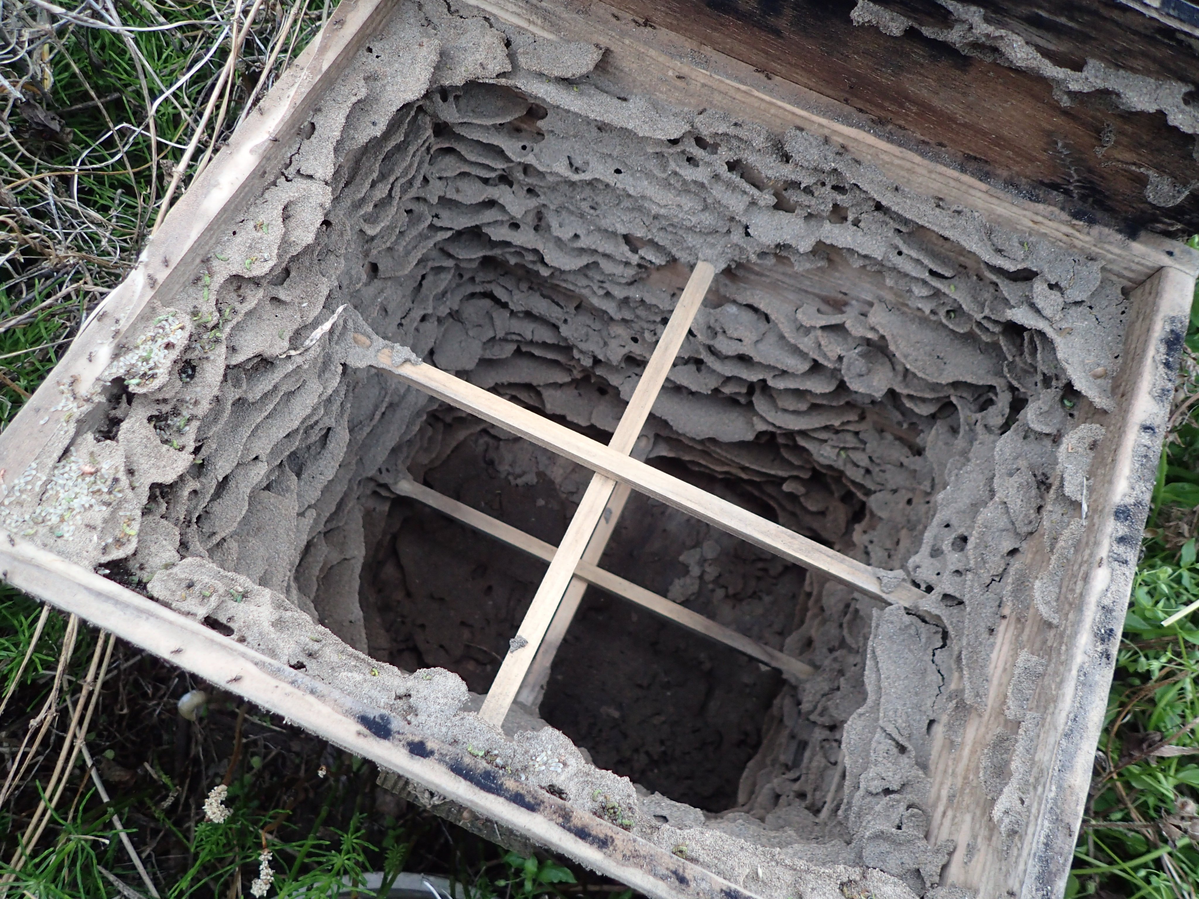 畑の片隅に、ミツバチ用の古い巣箱を置いてたんですよ。もう5年以上も置きっぱなしで、そろそろ処分しないとなあ~なんて考えながら、フタをカパリと開けてみました。そしたらさあ、すごいことになってたんですよ! https://t.co/c44gMWh8lQ
