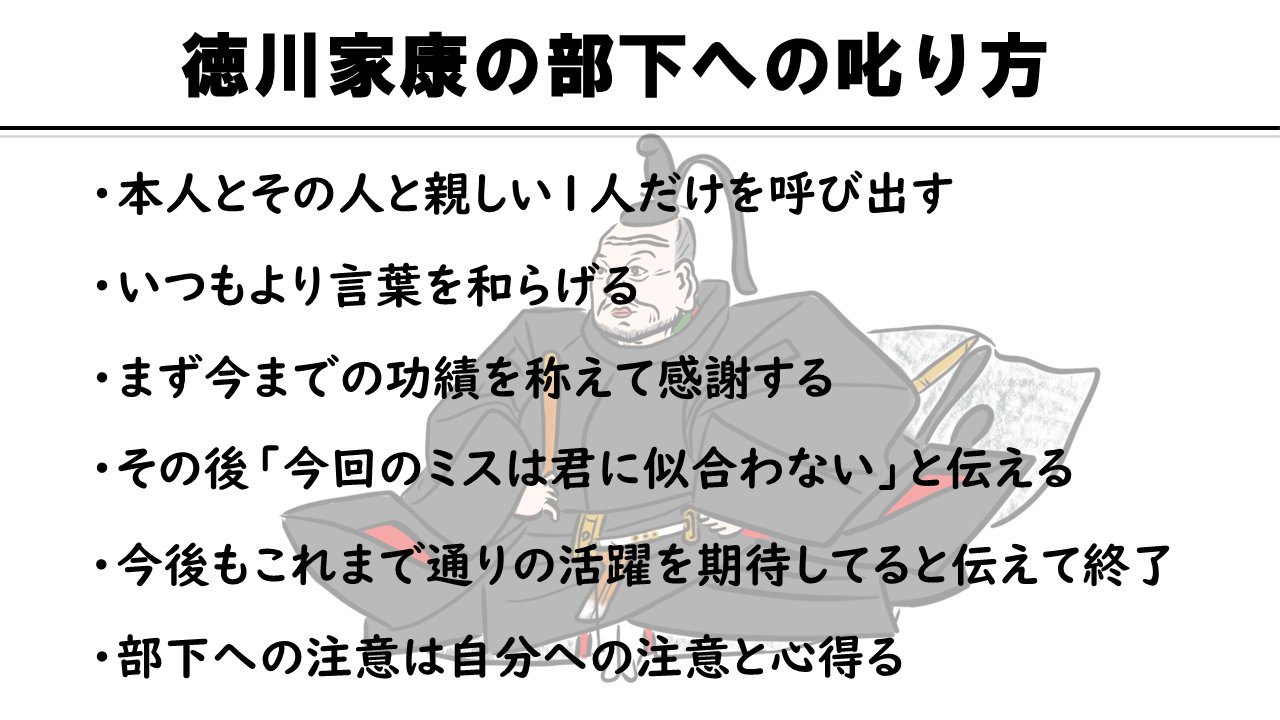 @bit_ravel 部下を叱る時に人間性って見られますよね😌徳川家康みたいな叱り方を意識します✨