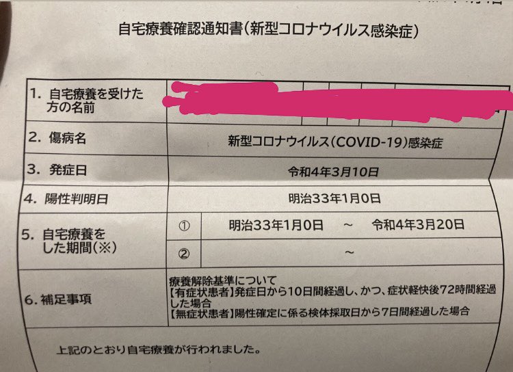 ねぇwwwwコロナの陽性判明日、明治33年ってなにwwwwwwwwwwwwwww自宅療養期間122年wwwwwwww文明開花の音がするwwwwwwww https://t.co/22Qma8uBaO