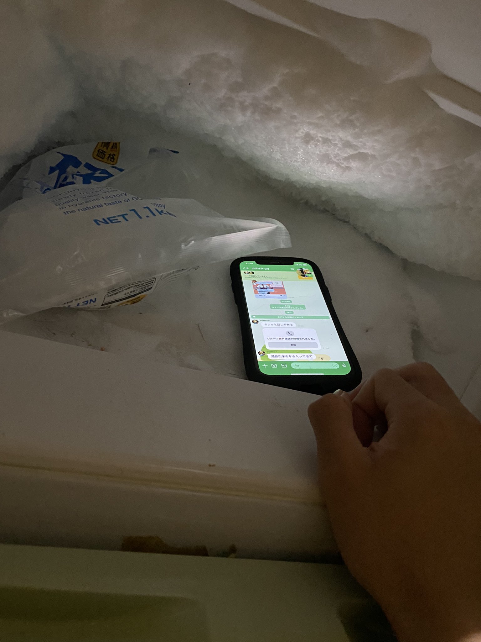 LINE電話してると本体クソ暑いから冷凍庫入れながらやってる https://t.co/6KmsNiQyal