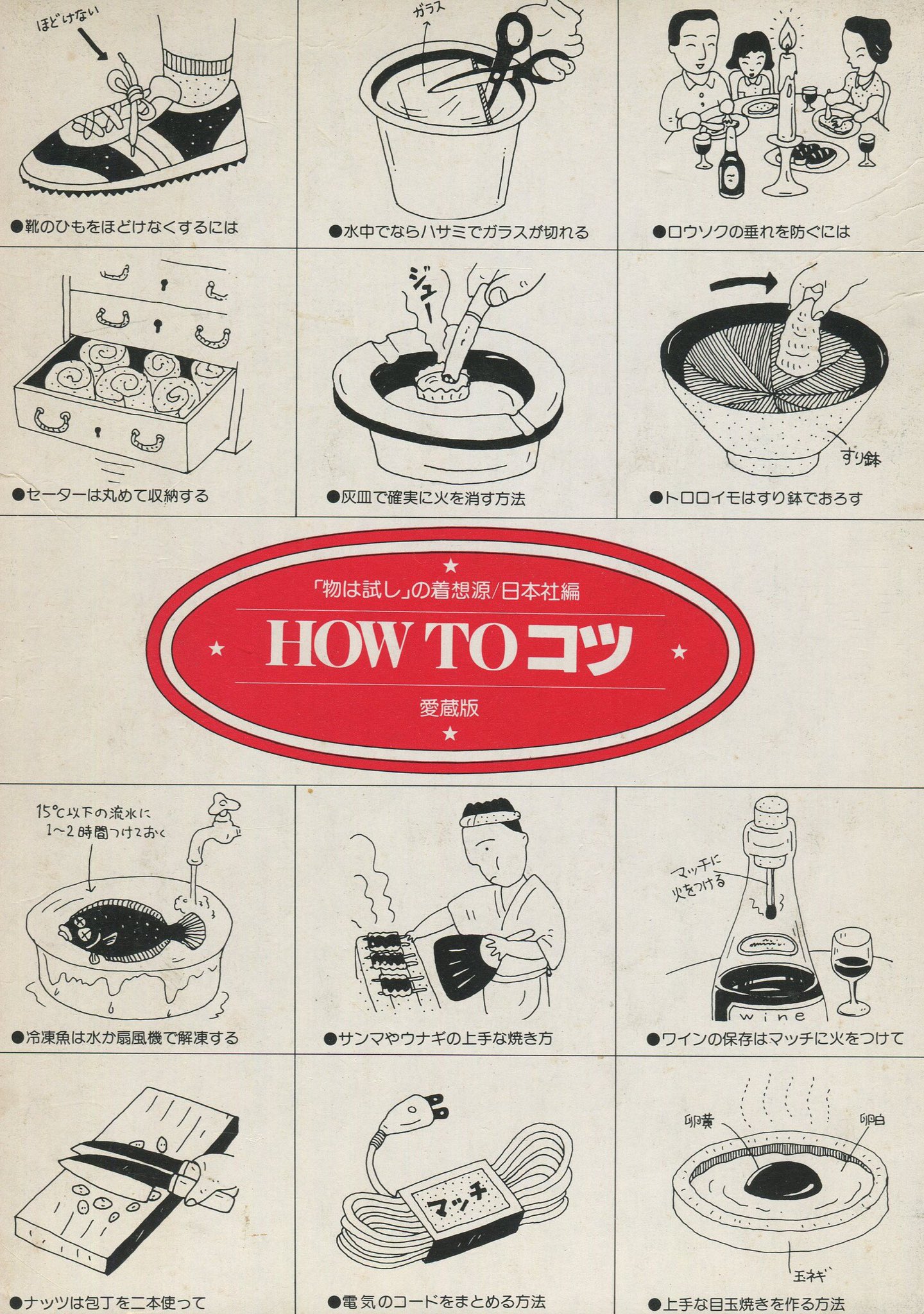 このほかにも「もったいなくない丼ものの残し方」「ズボンでの座り方」「ベテランダイバーにみえる態度と行動」「ミドリガメの正しい持ち方」「効果的なアカンベーの仕方」などのノウハウがたくさん収録されております