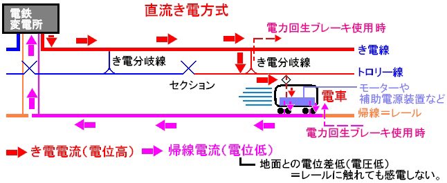 @Aefh3sg0R43qi3o 電車が架線からパンタグラフを使って電気を取り込んでるのはご存知かと思いますが、その電気は色々使われた後に車輪からレールを伝わって変電所に帰っていき、直流回路が完成します。電池で電球を点けたりモーターを回したりする工作のデカい版だと思ってください。鉄道オタクからは以上です。