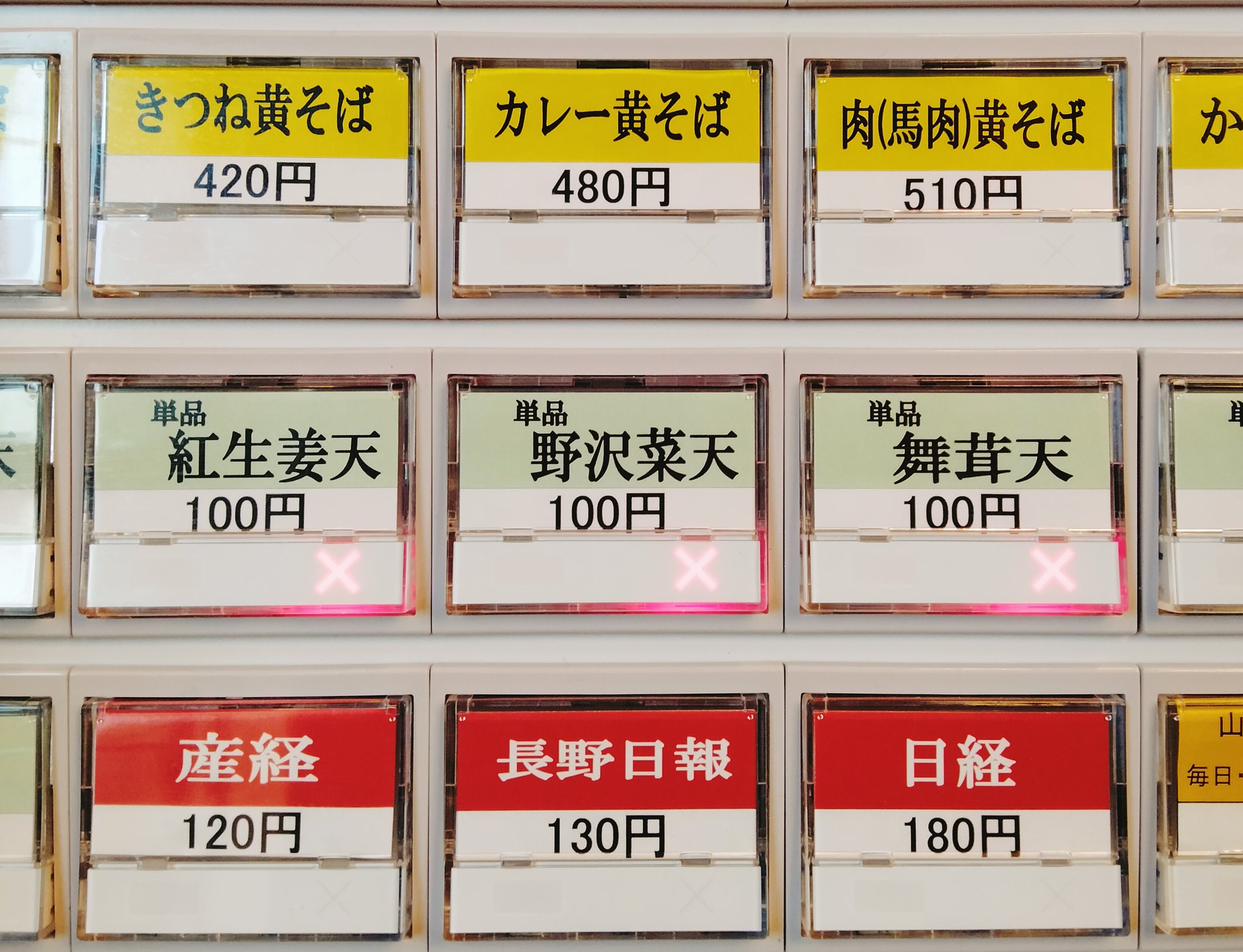 新聞も一緒に売っているそば屋の券売機。こんなのは初めて見た。 https://t.co/dKvG8wmXNF