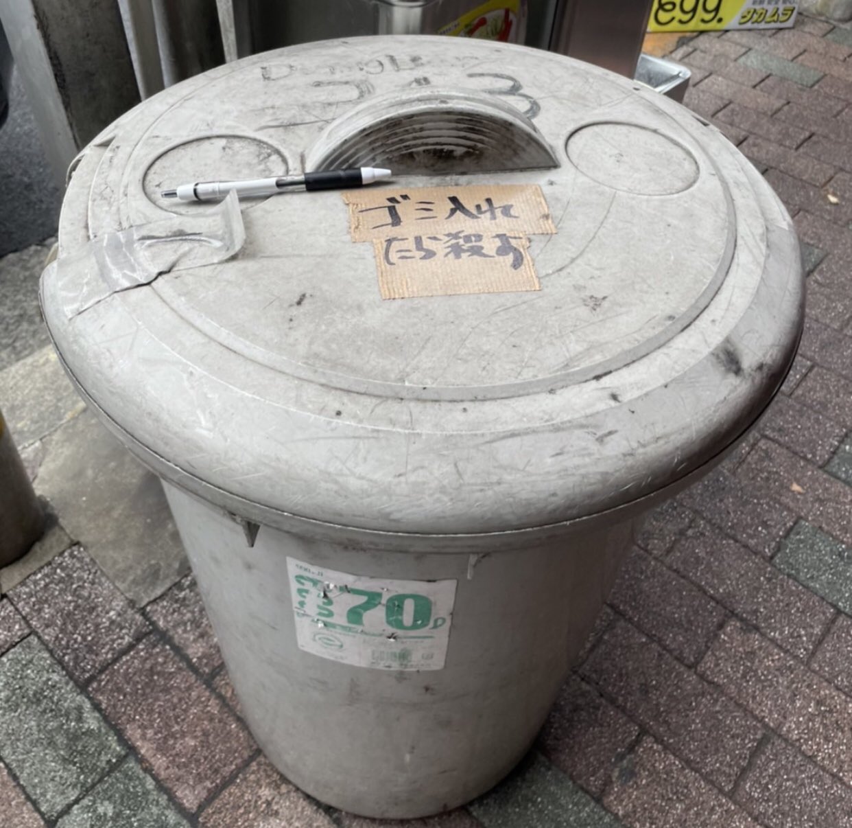 【修羅】道端のポリバケツに貼られた注意書きの表現がストレートすぎるwww