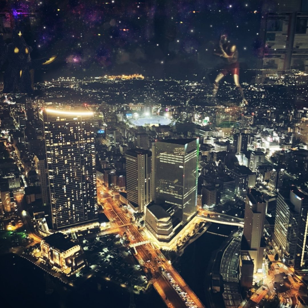 知人の娘さんが横浜ランドマークから夜景を撮影した写真みたいなんやけど、後ろに展示されてるウルトラマンが写り込んでいい感じになってる笑 https://t.co/zKtcpLZ0du