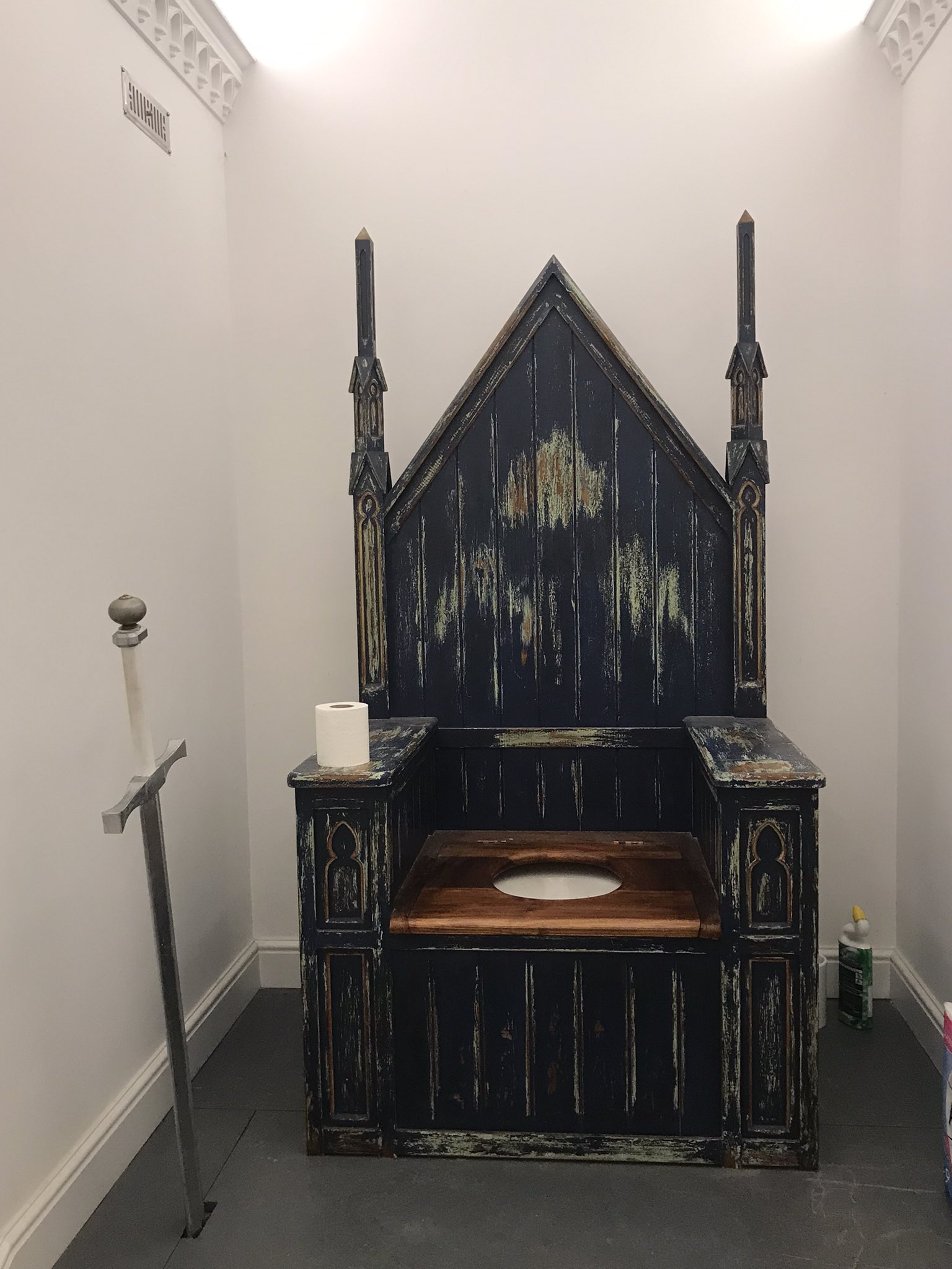 今日とある物件の内見に行ってきたんだけど、トイレのクセがすごい〜!!!玉座〜!!!!流す時は手前の剣を引くんだって😂ぼっとんに見えるけどちゃんと水洗でした🚽もしここに引っ越したら玉座トイレなのか…..子供にはやりにくそうなトイレ😂 https://t.co/4tLc2xyq5G