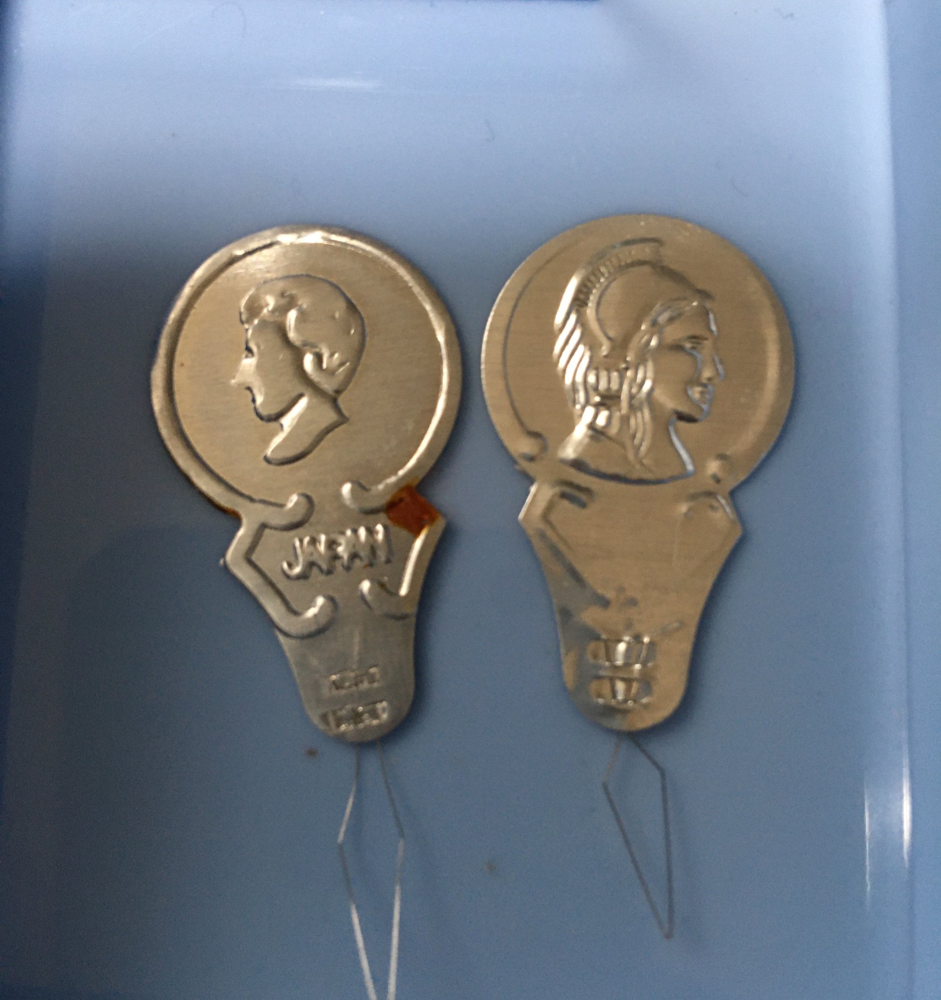 @mur_xx こんにちは!10年ほど前に無印で購入したミニ裁縫セットの中に入っていたものです。すごく薄いけど女性かな? https://t.co/Yc0oPhY146