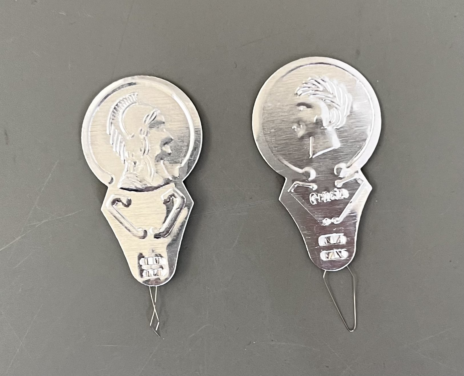 @mur_xx 面白いので参加します!昨日届いたばかりの子ども達のセットには左の2つが入っていました。私の裁縫箱にはカオナシとKAIロゴの入ったおじさんらしき横顔のものがありました。今まで気にしたことなったけれど、面白いですね。 https://t.co/7Ptc3hztsN