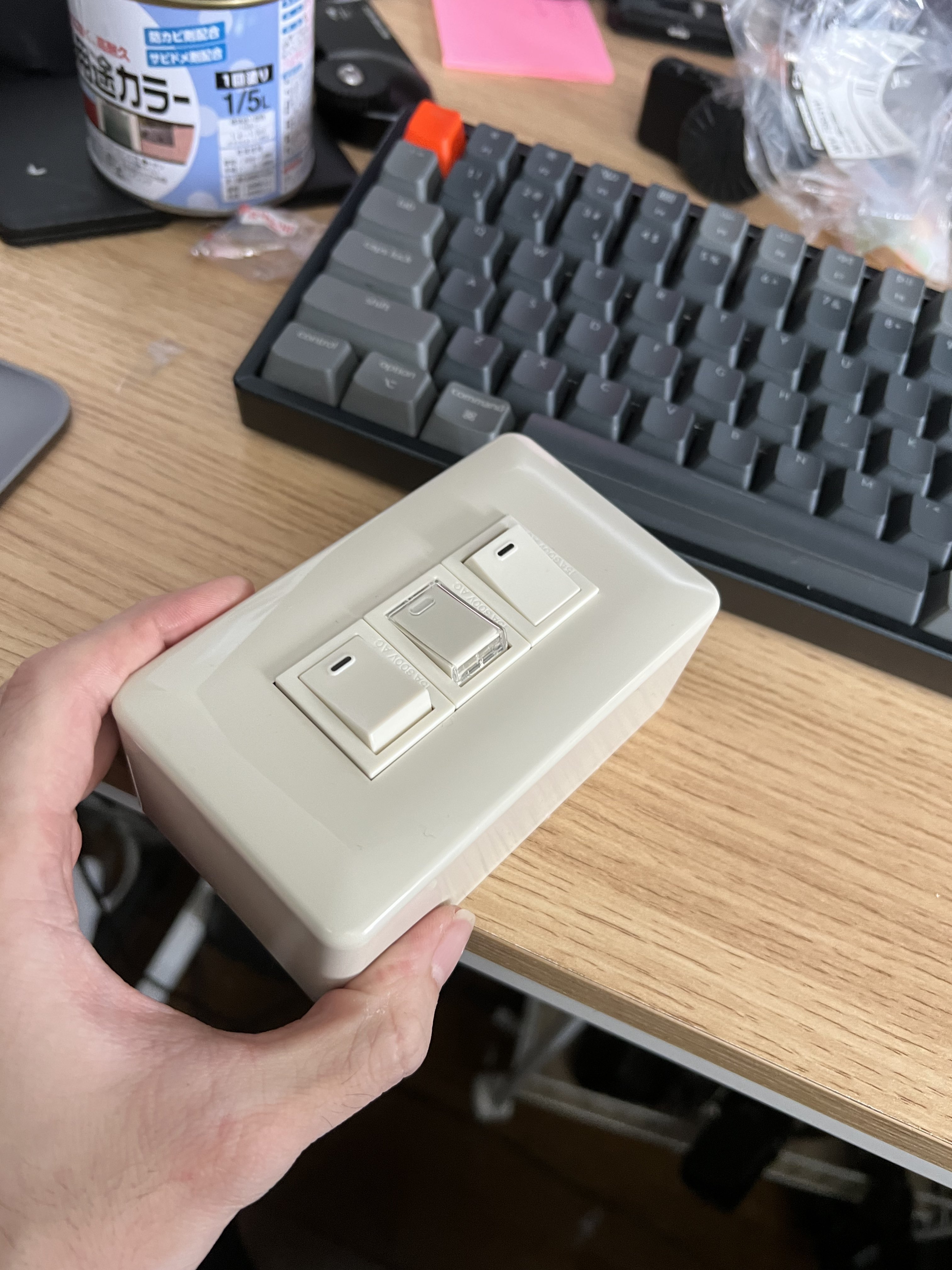 1歳3ヶ月になる息子がスイッチ類を触りまくるので、おもちゃを作りました。リアルな見た目とフィードバックが子供だましのおもちゃにはない背徳感を刺激するようで、好評です。 https://t.co/4SUNdSNnGu