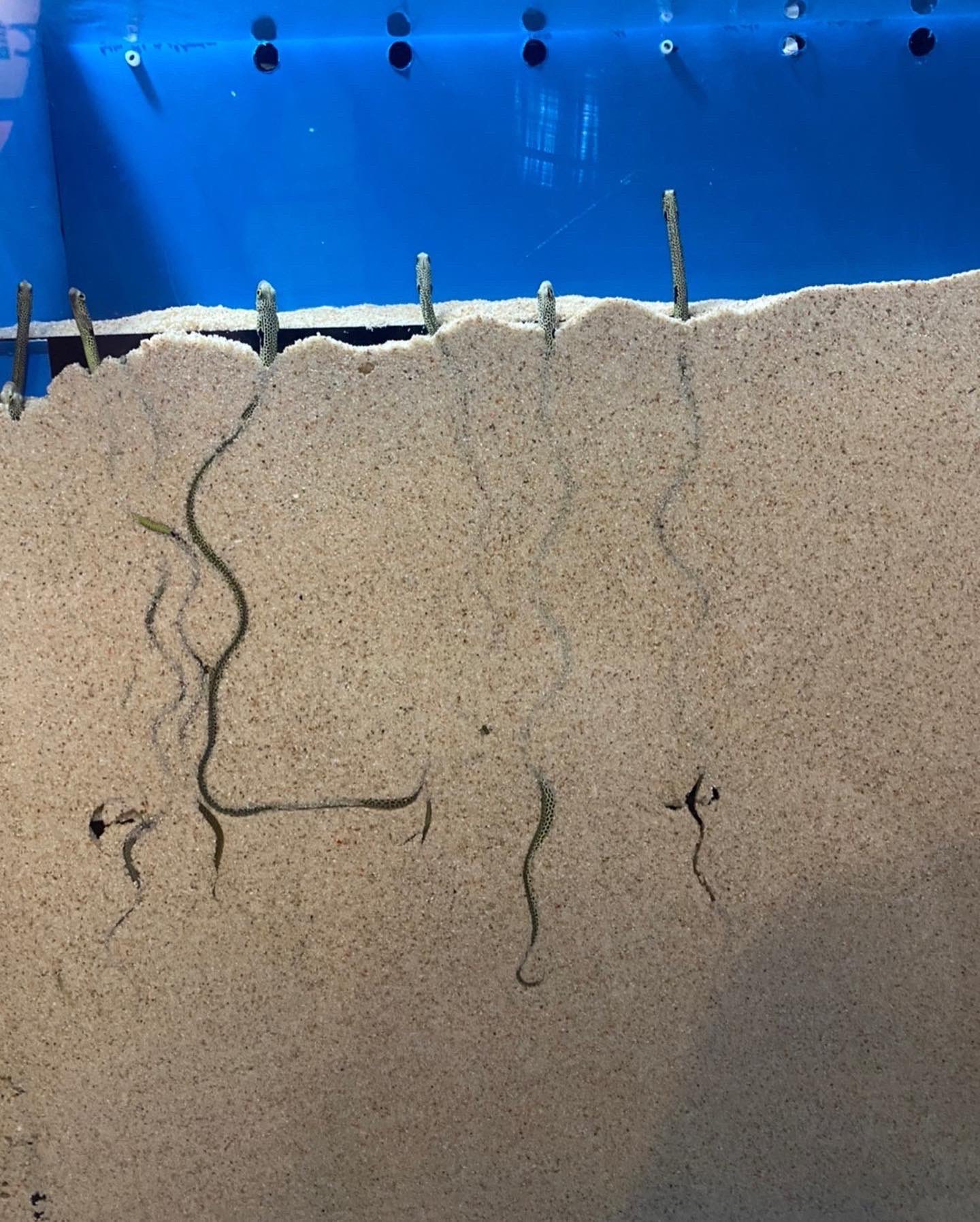 チンアナゴの砂の中の姿を見てきた。思ってたよりくねくねしてた。 https://t.co/8yAIVrdhJt