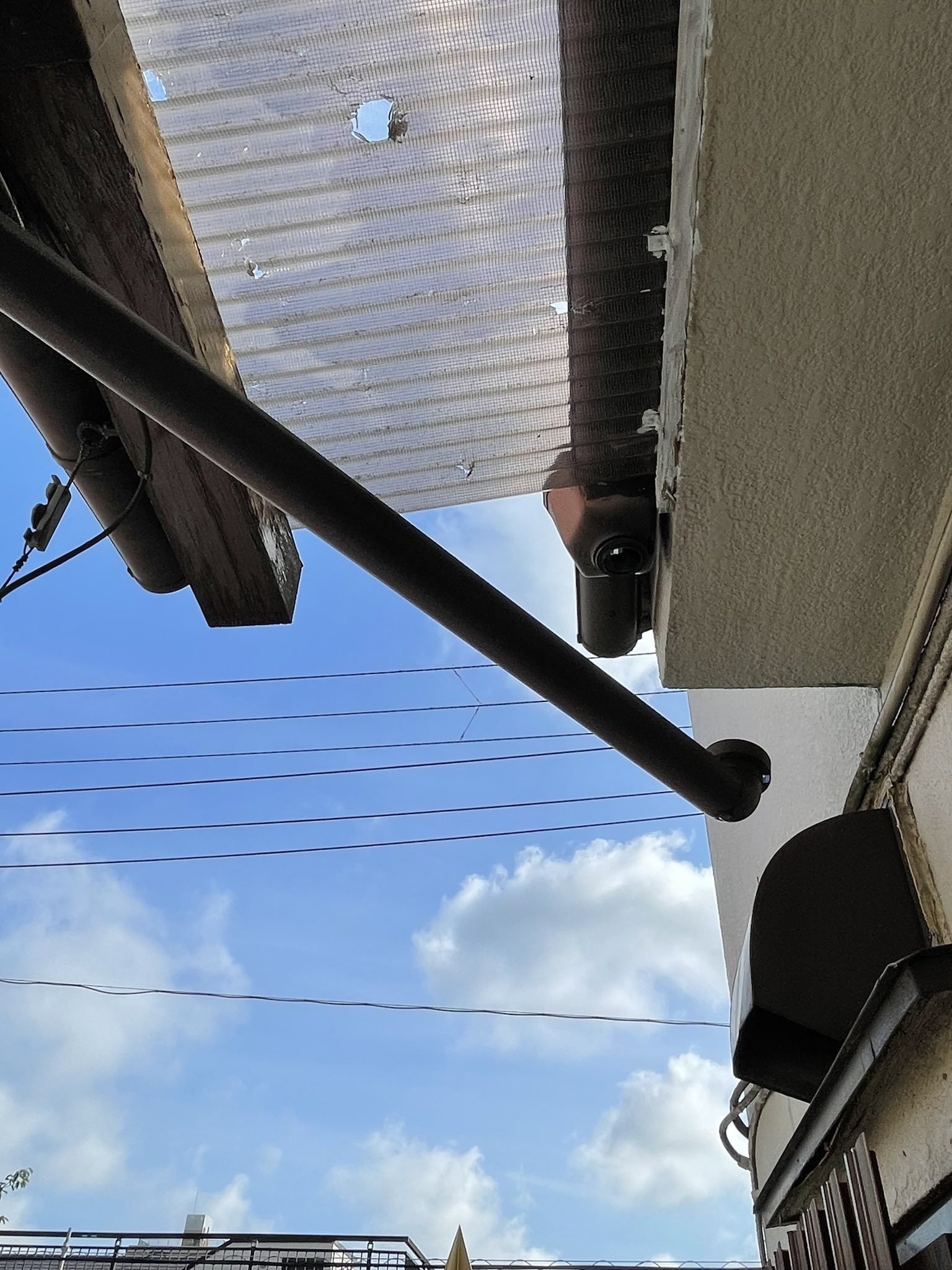 今日の15時半ごろ、突如激しい雹で家のガレージと縁側の屋根が突き抜けました😥窓ガラスとかは被害なし。クルマも屋根の破片で多少傷ついたかもだけど、被害はなさそうなので不幸中の幸い。ガレージは薄いから仕方ないけど、まさかあんな固そうなプラスチック屋根突き抜けるとは…怖かったです😞 https://t.co/qMZYqRyi88
