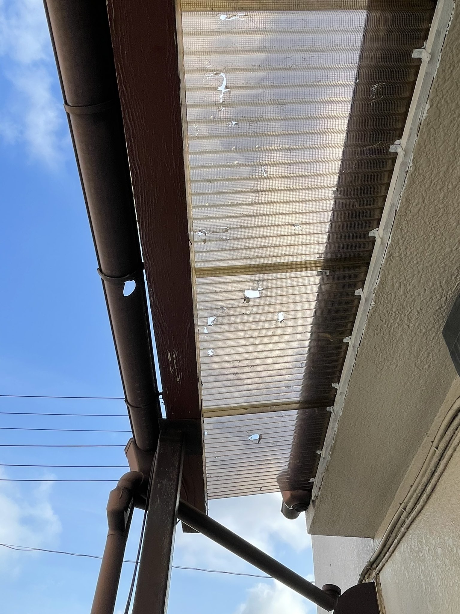 埼玉の実家のガレージの屋根が雹で穴だらけになった#雹#雹被害 https://t.co/Ljgc3PEUuu