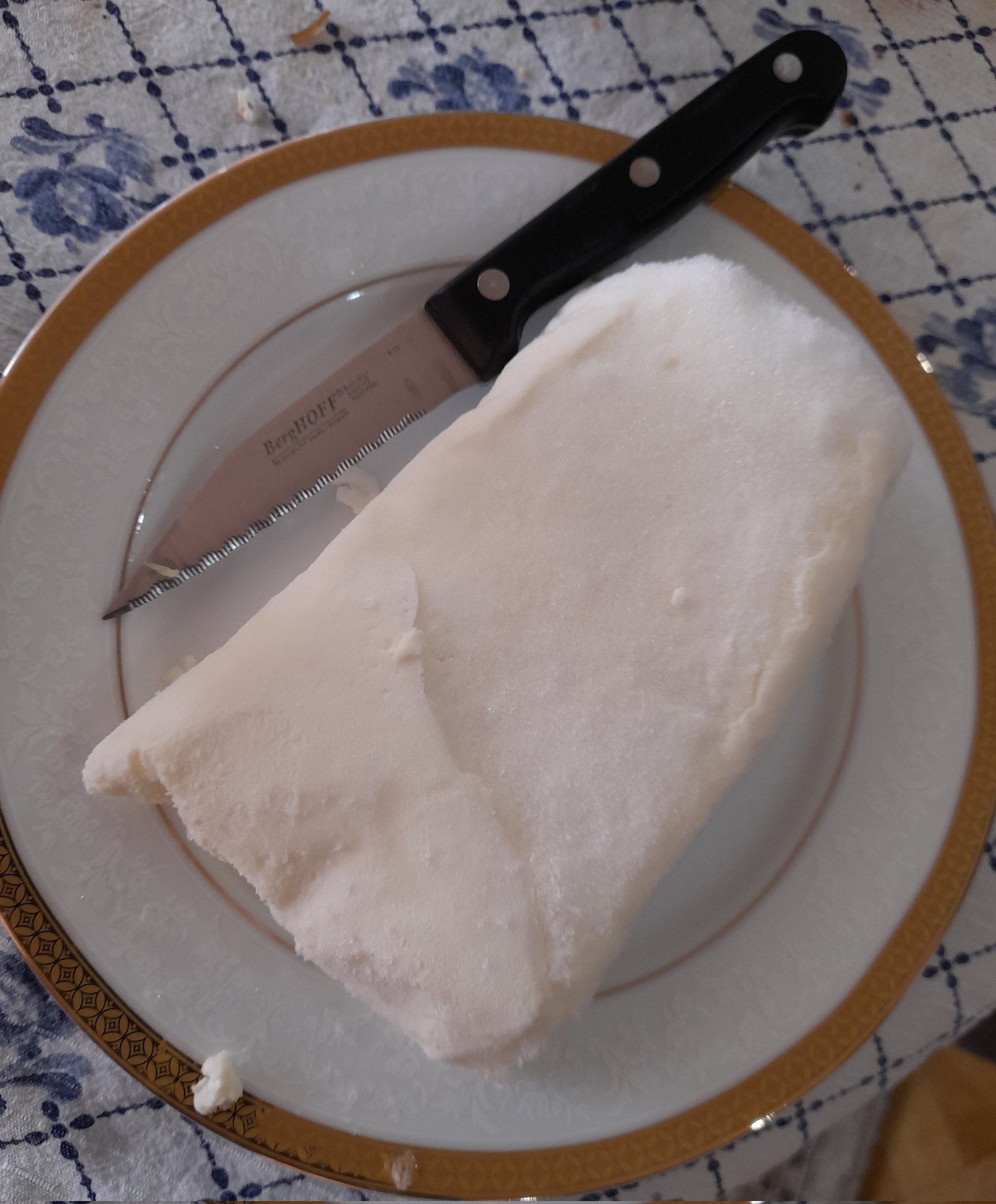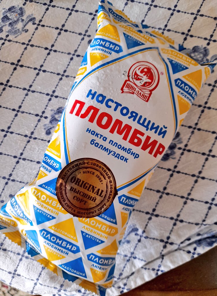 カザフスタン製のアイスクリーム買ったら棒も刺さってない塊が出てきてビビった。ナイフで切って食べたらめちゃくちゃ濃厚でおいしかった。 https://t.co/pmGRVvyDlQ