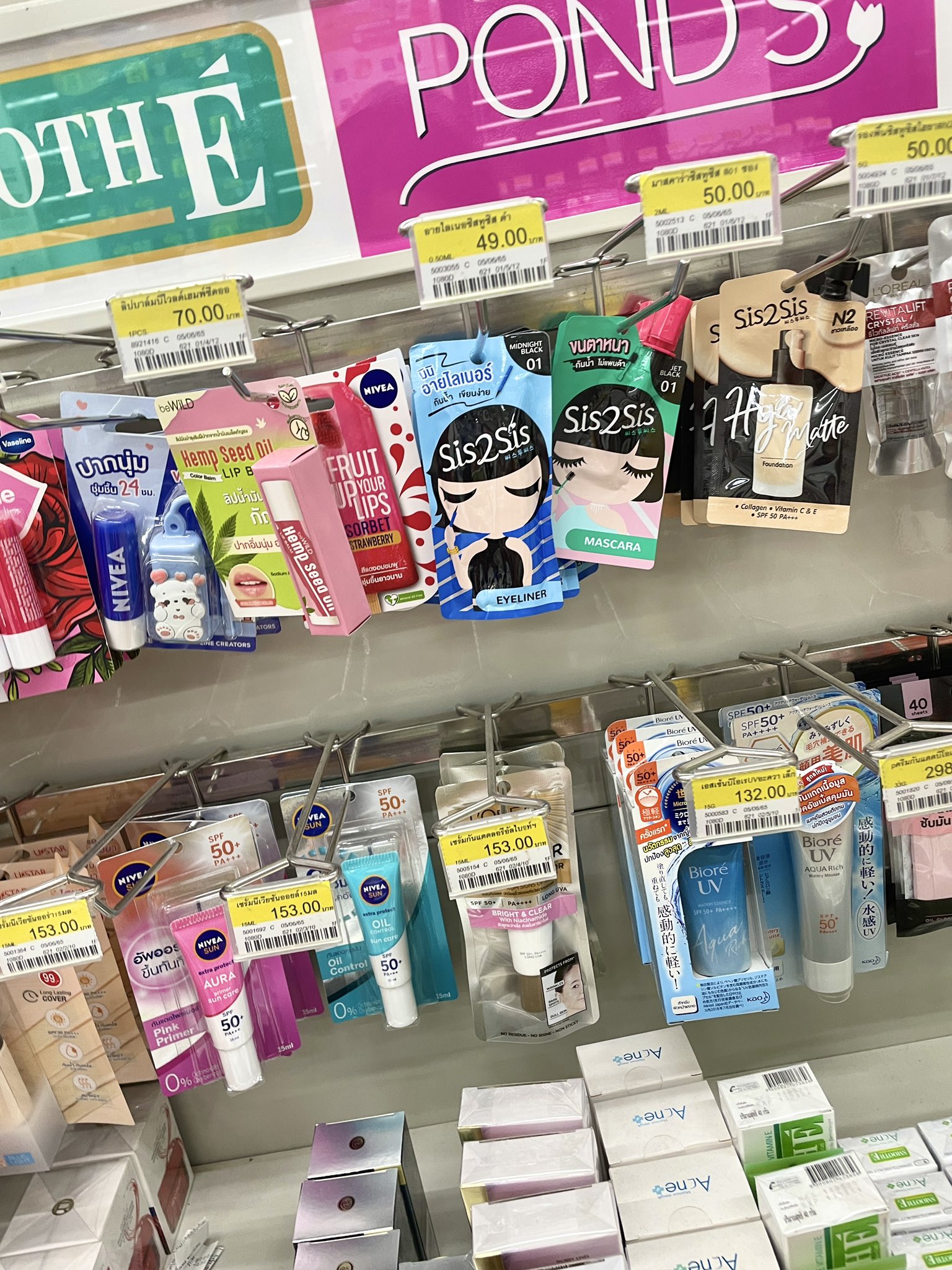 タイのセブンイレブン凄い…「1回分」だけの化粧品が売られている…!BBクリーム、日焼け止め、化粧水、マスカラ、口紅、少量で売ってるの化粧品忘れた時にマジで有難い!テスターとしても良いし日本でも流行らないかな。パウチ型のマスカラや口紅、初めて見た。マスカラは約186円。割高でも需要ある。 https://t.co/gw8UkNfYtz