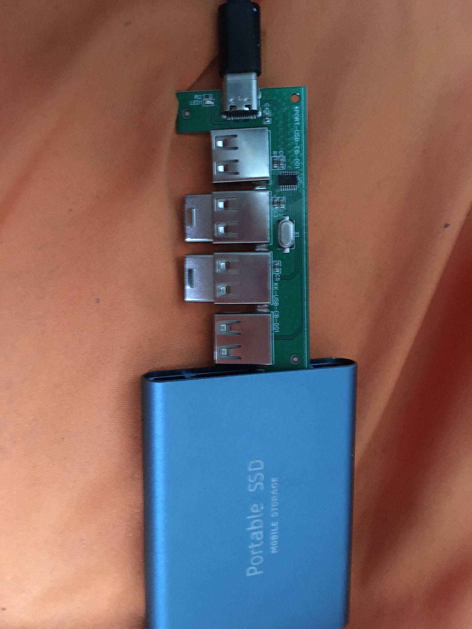 4TBのポータブルSSD認識しなくなったから分解したらUSBメモリ×2が刺さったHUBが出てきたわ https://t.co/Ysqbbz52MQ
