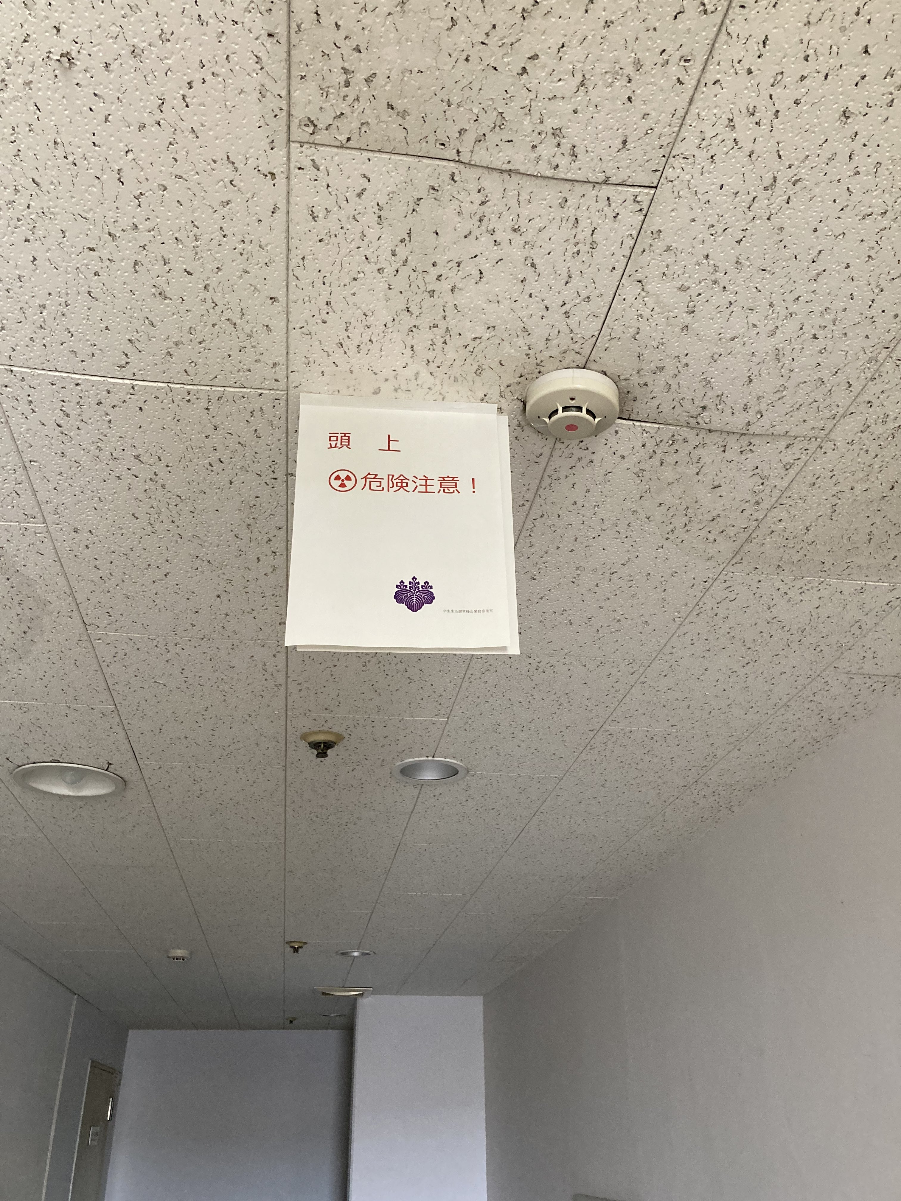 α線源(241Am)が使われてる旧式の火災報知器(煙感知器)なんでしょう。廃棄にはメーカーかアイソトープ協会に連絡が必要なので、それまでの措置ではと。線源引っかいたりしなければ、普通に下あるいても同室に滞在しても問題ありません。 https://t.co/wq6wgU8iIU