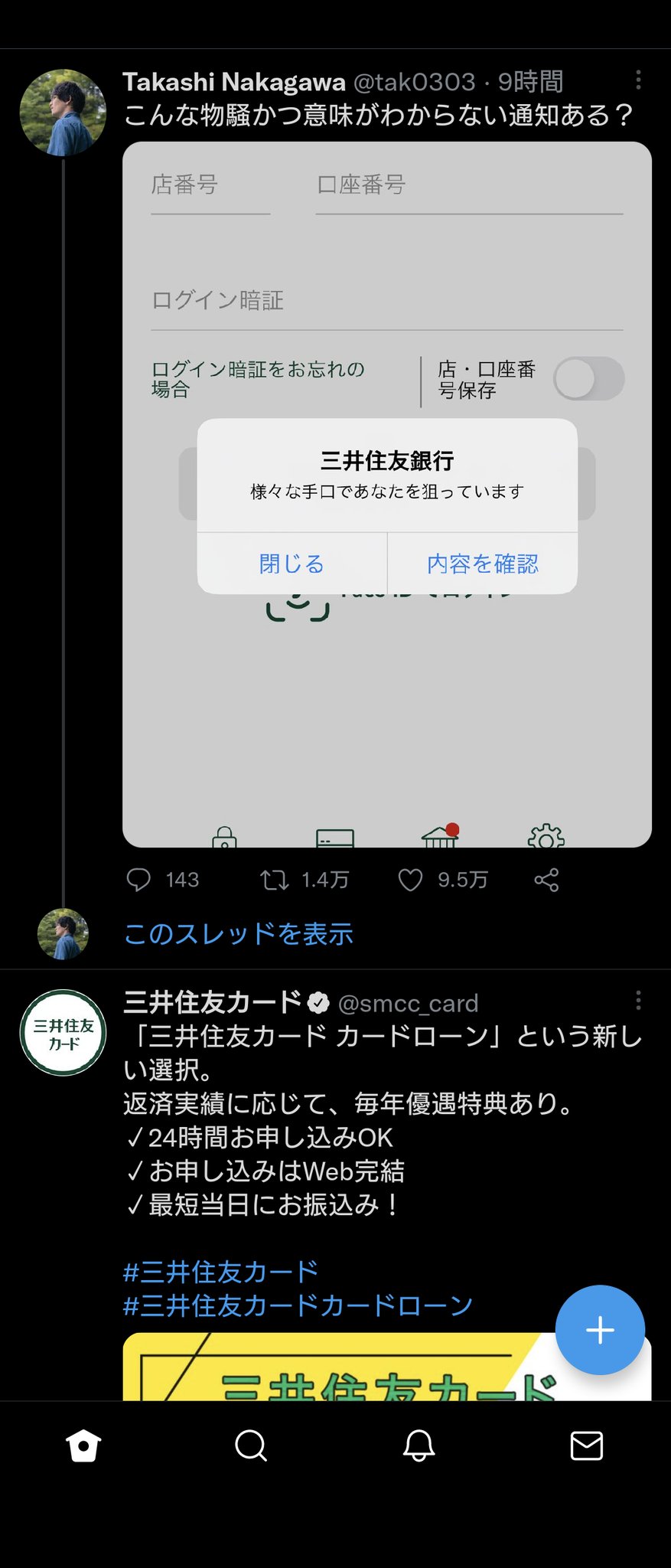 @tak0303 えー……こんなことあるんですねΣ(・□・;)もし不安でしたら三井住友銀行に問い合わせても良いかと思います