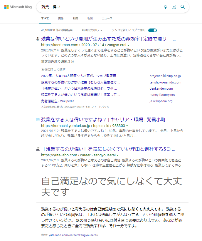 @tetu_kyozin これは笑うし、休日出勤が何も偉くないというのも同意見でも、最近の検索エンジンはデカ文字で端的な答えを言ってくるししかもその答えは検索エンジンの恣意が介入している