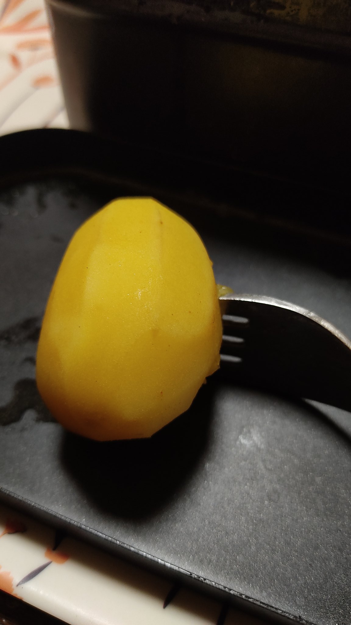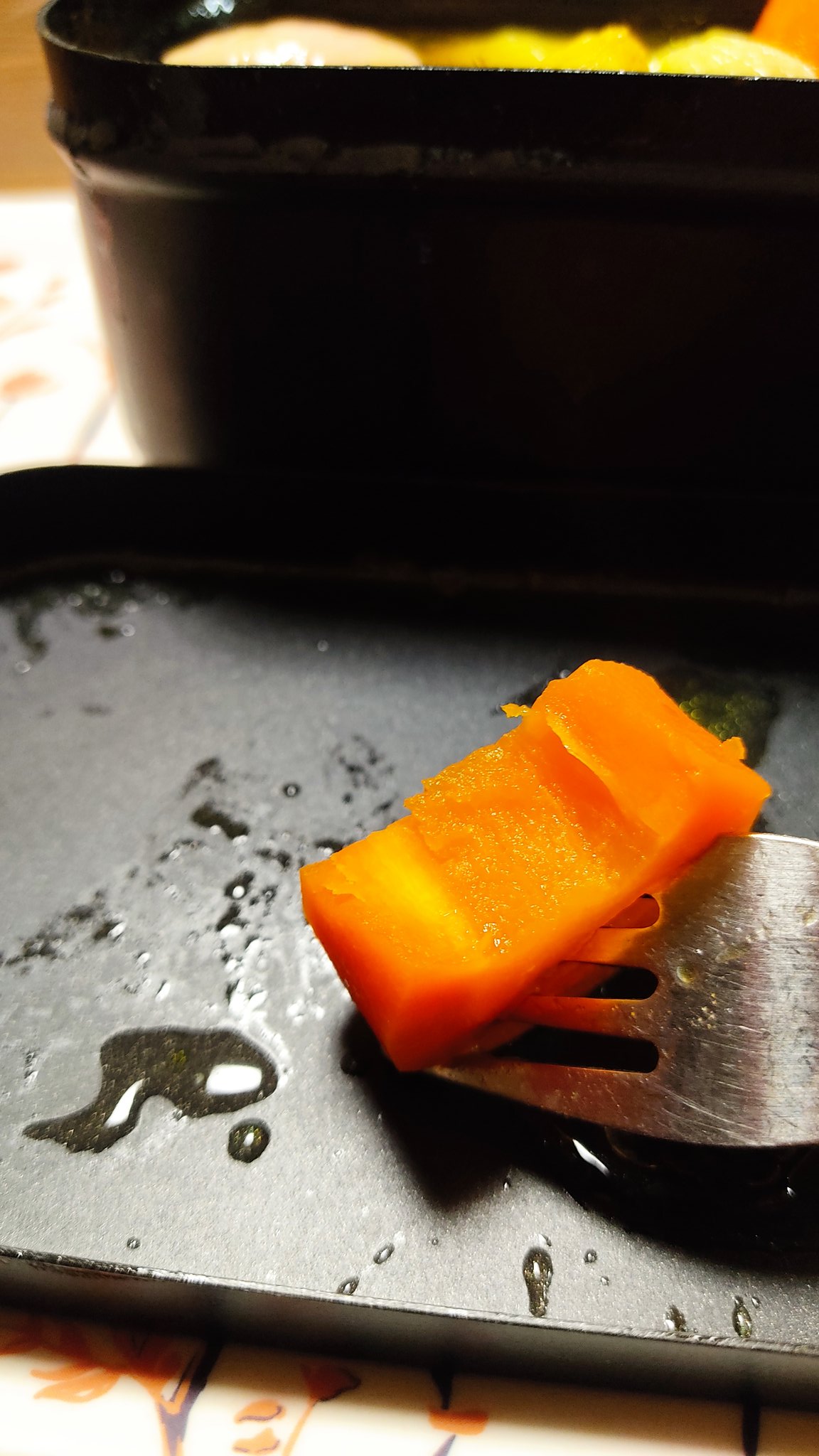 じゃがいも、人参、フォークは刺さるけど割れないくらいの硬さ。火は通ってる。人参、玉ねぎ、すげー甘い。うまい。 https://t.co/wMhbsSigCe