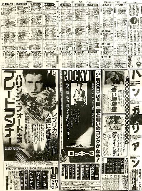@CinemabarB @amiga2500 この中で映画「ブレードランナー」が不入りで1週間くらいで打ち切られたんですよ。電車の車内広告まで打ってたというのに。新宿の一番大きい映画館ガラガラ。10人くらいしかいませんでした。人気が出たのはレンタルビデオが出てから。