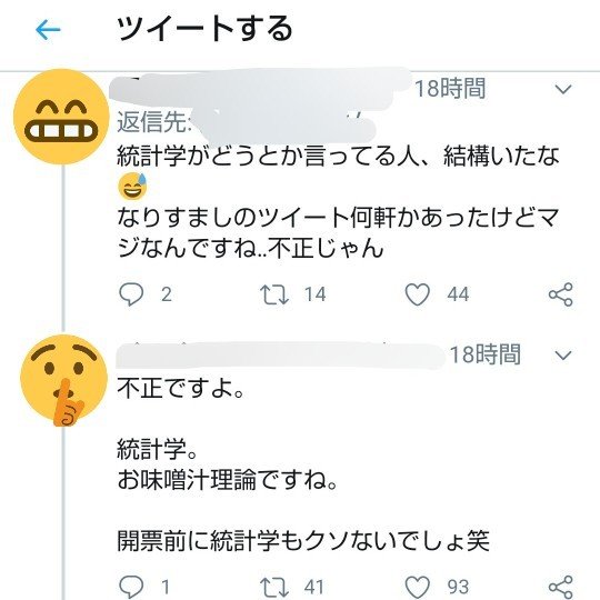 @Hyutyan1041 統計学じゃないなりすましの不正投票が機能してる可能性があります出口調査で本当の投票先を答えている人が何人いるのかもわからない8時に当確がうてることがおかしい 投票率も本当かどうかわからない https://t.co/YNqM5akU3i