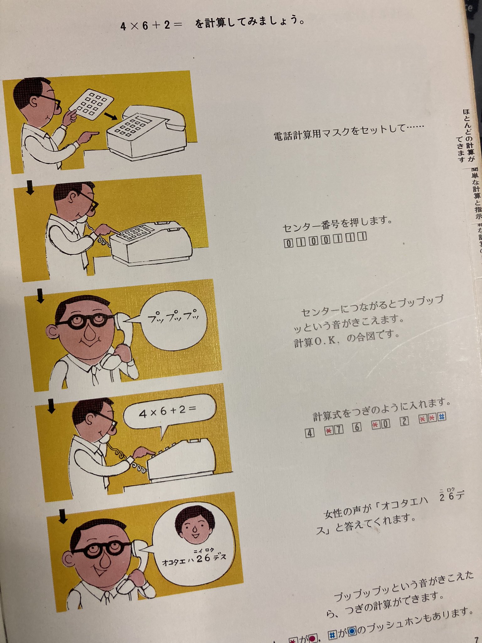 @hon_kichi 電話先でオペレータが別の計算機を操作してるってことでしょうか、時代からして…あるいは、電話口で操作されたキーが直接計算機に入力される仕組みはあって、結果の表示画面をオペレータが読み上げるのかな?